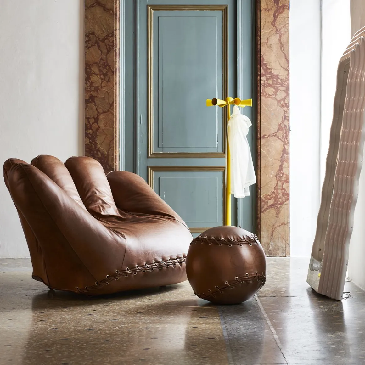 Pour le cinquantième anniversaire de Joe, est sorti Joe Ball, un repose-pieds et pouf en cuir, dont la forme et les coutures sont celles du baseball classique. Complément naturel du fauteuil, le pouf a un poids à l’intérieur qui le rend également stable comme siège, l’empêchant de rouler. Les oursons en cuir de Joe Ball portent les marques caractéristiques du Centro Studi Poltronova, du cinquantième anniversaire et de Joe.