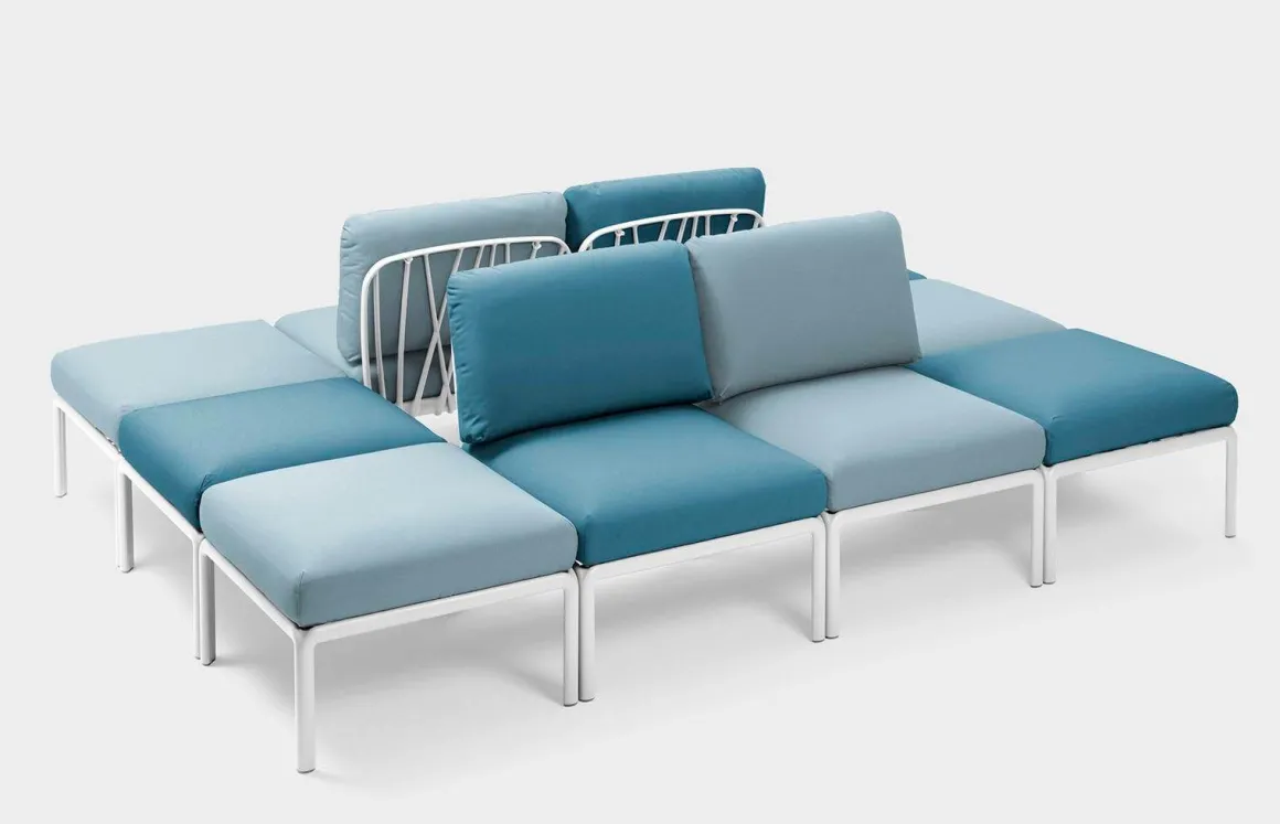 Coussins : rose, gris, bleu (adriatic), gris bleu (ghiaccio), avocat, vert (giungla), beige (canvas) ou beige chaud (tech panama)