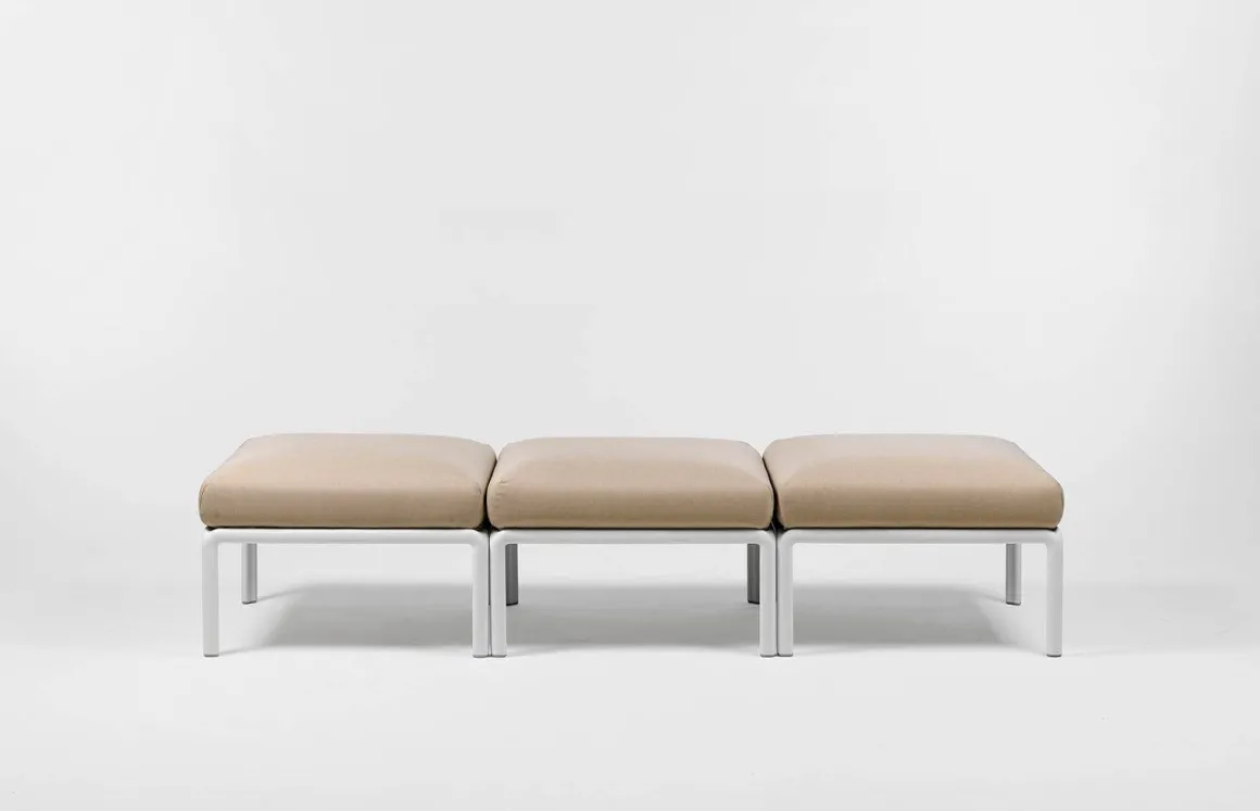 Pouf original en résine de fibre de verre et rembourré. Il peut s’acheter seul ou être intégré comme un élément artistique dans des ensembles plus grands prévus par la collection d’assises modulaires Komodo.