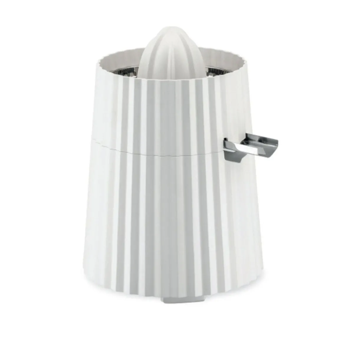 Presse agrume électrique plissé de Alessi par Michele De Lucchi. Le caractère unique des tissus plissés de la haute couture habille la série de petits électroménagers créés par Michele De Lucchi. La collection Plissé donne à l’environnement domestique une touche de légèreté raffinée. Le presse-agrumes électrique Plissé est une petite architecture domestique, à laisser en vue pour en apprécier son charme formel et évocateur. Parfait pour préparer des jus frais et désaltérants. Pratique à utiliser et facile à nettoyer.