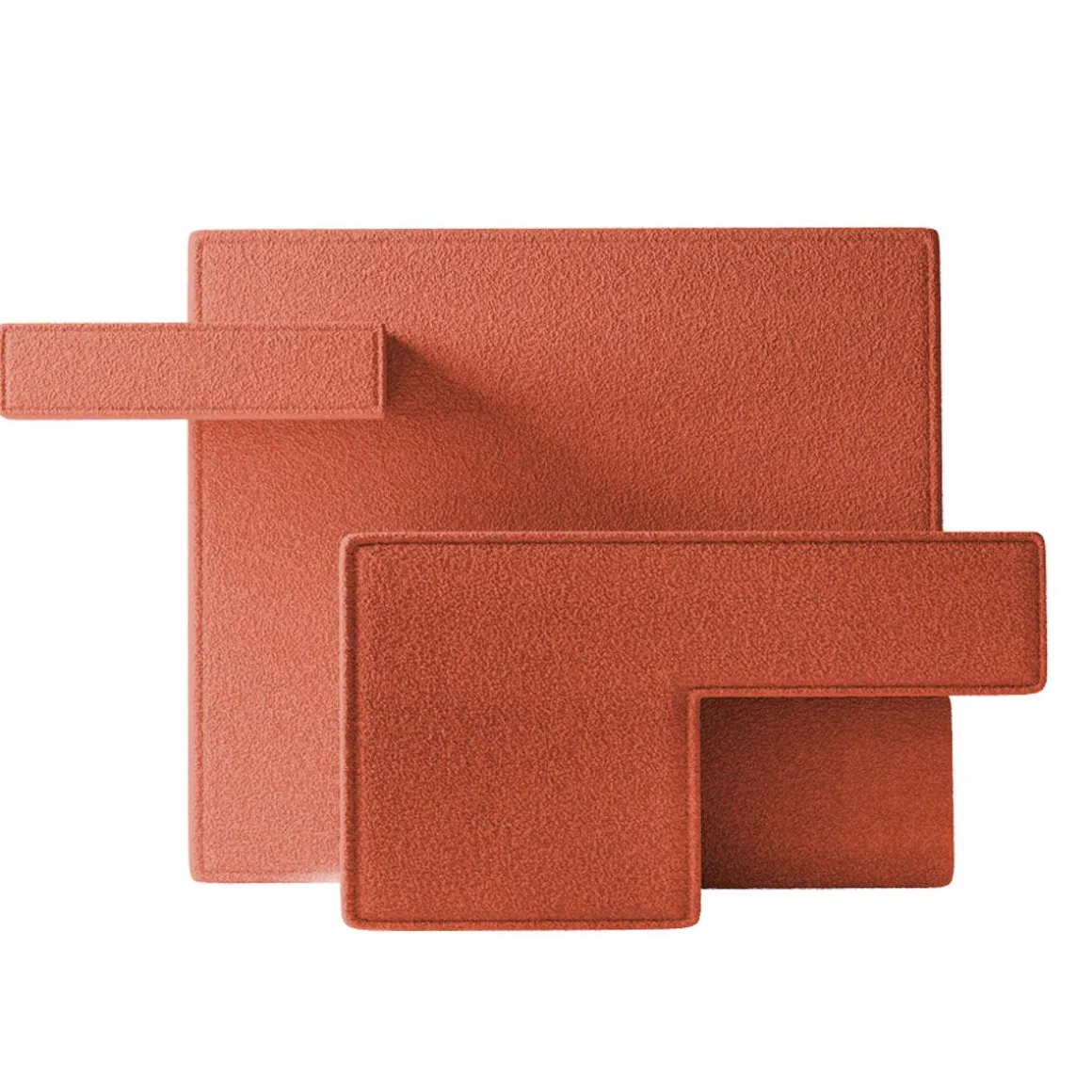 Primitive de Qeeboo par Studio Nucléo. Le fauteuil Primitive, jouant sur l’asymétrie des volumes primaires, est réalisé avec une structure rembourrée et recouverte d’un tissu bouclé.