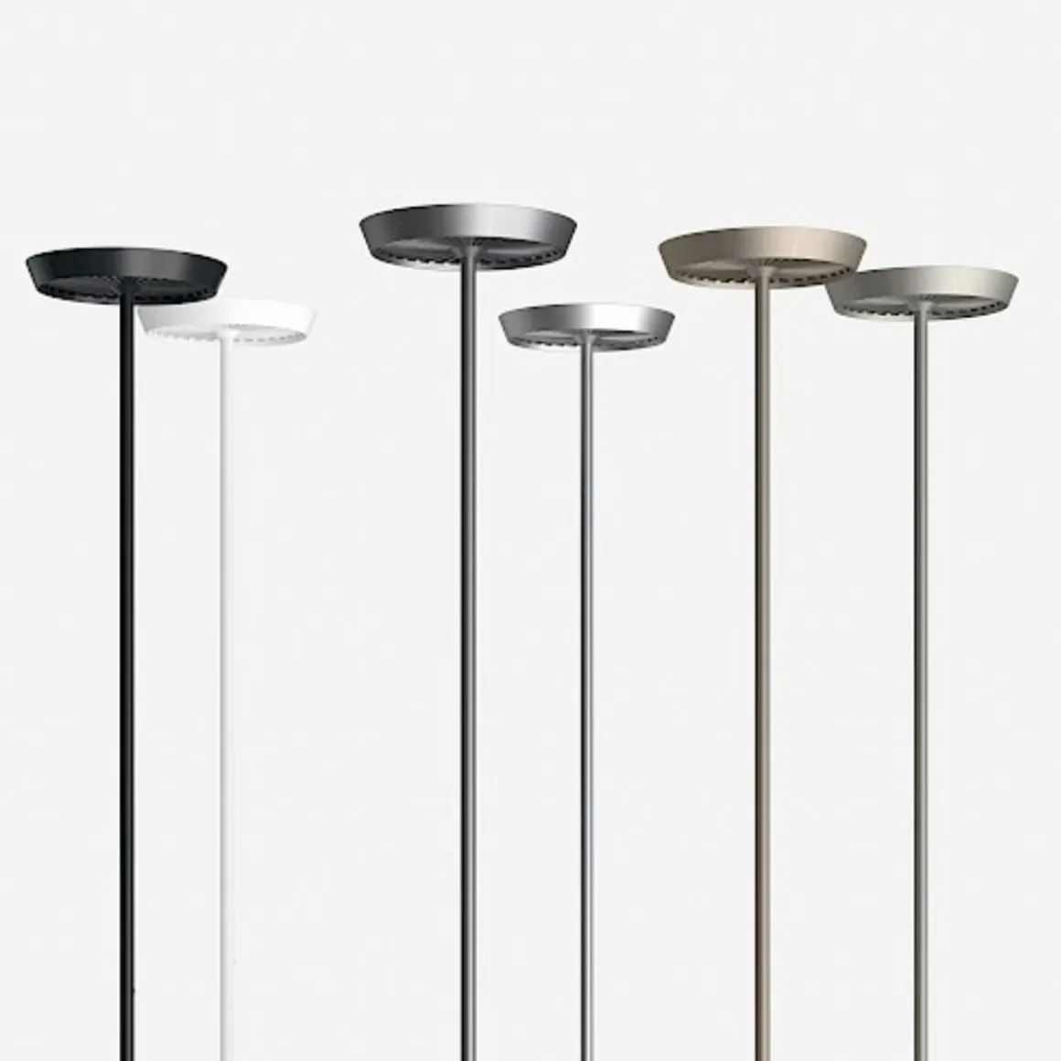 Ce lampadaire, simple et élégant, permet un éclairage indirecte. Ses voyants sont cachés dans la partie supérieure de la lampe qui est une couronne en aluminium moulé. La LED créé un faisceau lumineux de haute intensité vers le haut et un motif lumineux vers le bas. Le lampadaire, muni d’un interrupteur marche/gradateur sur la tige, est léger et compact, le rendant facile à saisir et à déplacer. Dans le même temps, cette lampe garantit la même quantité de lumière qu’une ampoule halogène de 400 Watts.