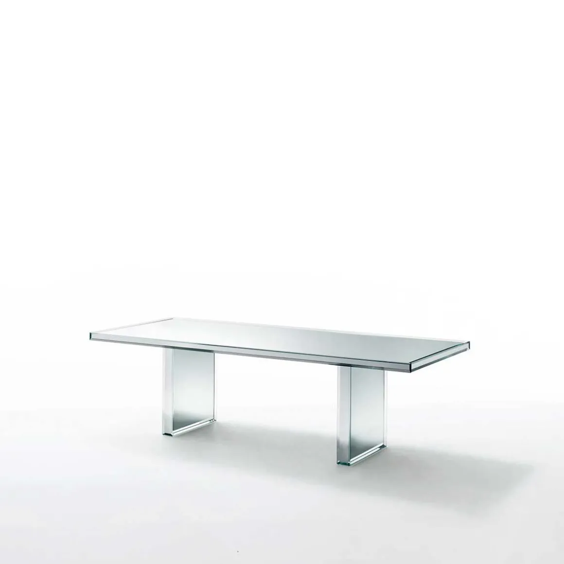 Table en cristal transparent extralight mm 12 argenté, créée par Tokujin Yoshioka, pour Glas Italia, spécialiste du matériau pur, noble et raffiné qu’est le verre.