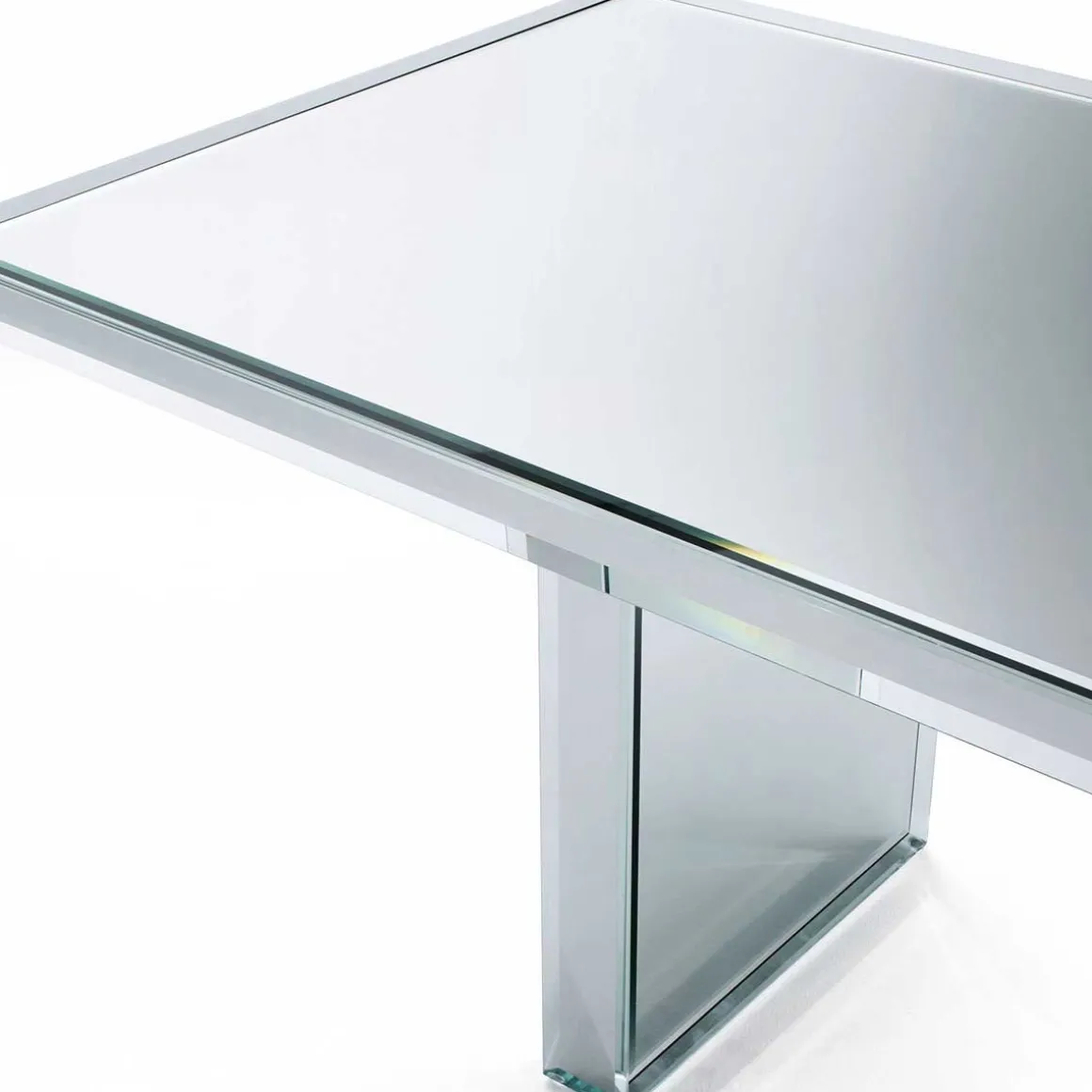 Grace aux reflets du miroir, aux meulages spéciaux et biseaux des bords du cristal, la table assume une brillance et une luminosité précieuse.