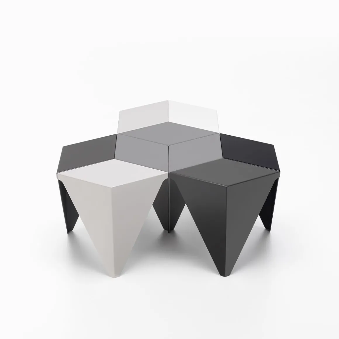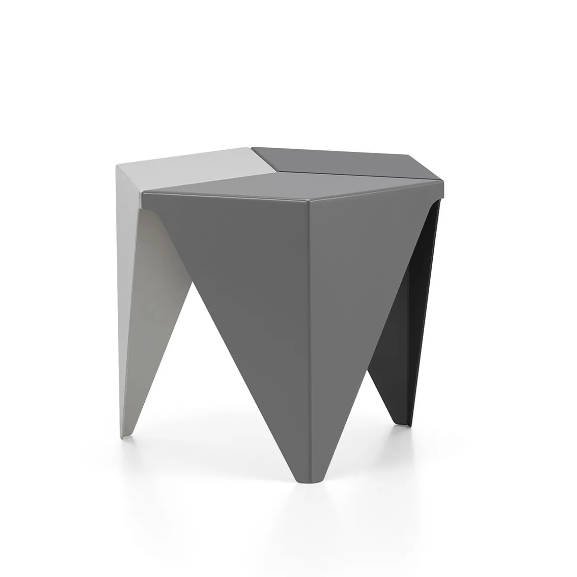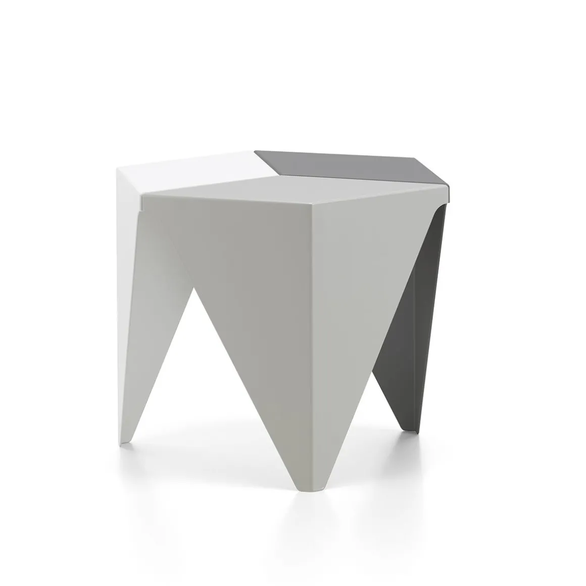La table Prismatic s’inscrit dans un langage formel purement géométrique, elle s’inspire des techniques de pliage de papier japonais traditionnelles. Cette table d’appoint se compose de trois éléments en tôle d’aluminium pliée dotés d’une finition époxy haut de gamme. Réunis, les éléments forment une table à trois pieds avec un plateau hexagonal. Comme l’avait prévu Isami Noguchi à l’origine, Vitra produit la Prismatic Table en trois versions, dont les trois composant se déclinent en différentes nuances sobres de gris. Disposés à plusieurs, les Prismatic Tables forment des motifs extraordinaires, aux apparences de kaléidoscopes.