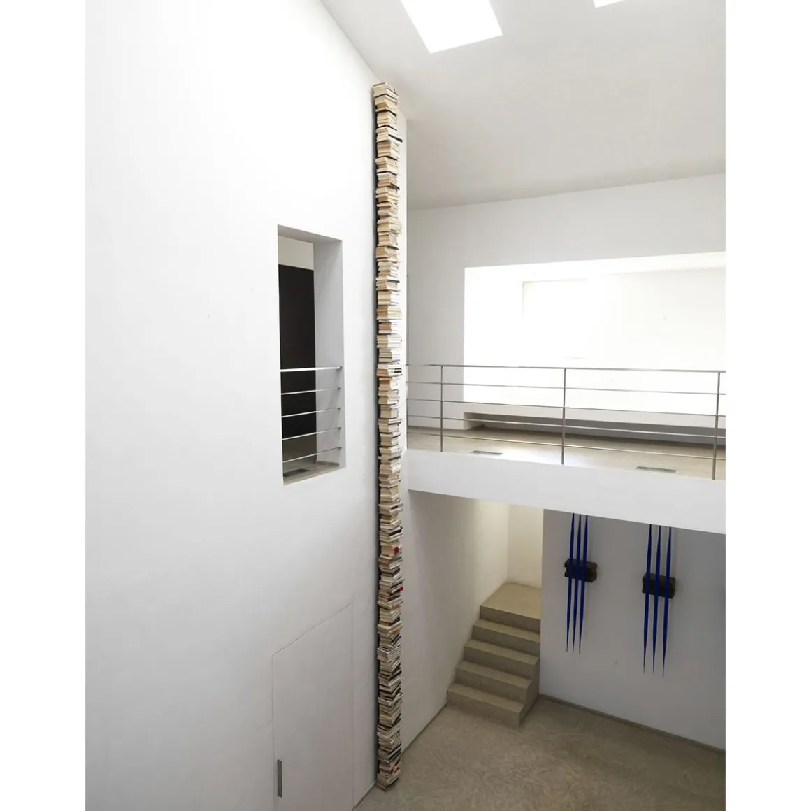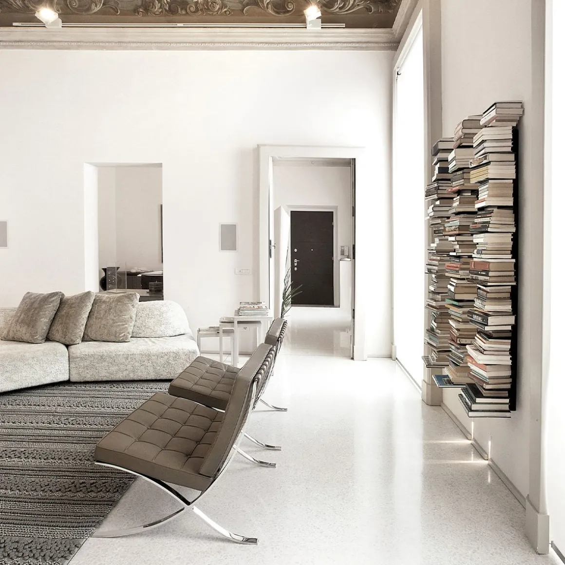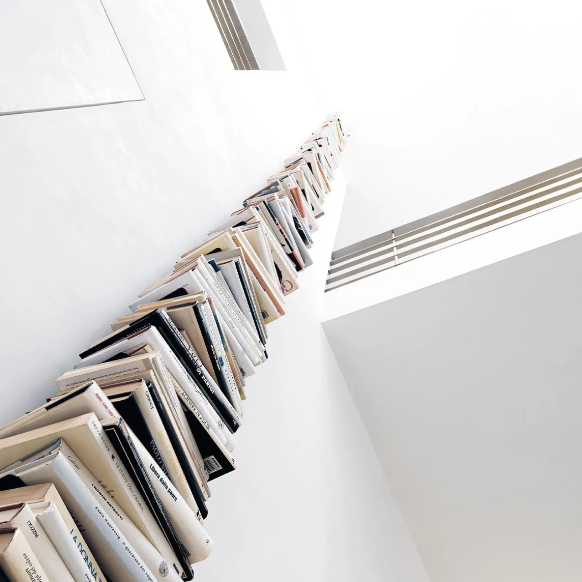 Il pourrait être défini comme la « colonne de la connaissance » Ptolomeo Wall, la variante murale de Ptolomeo Original. Une pile de livres en lévitation ou un colonne du sol à l’air (du sol au plafond) pour tout espace dans lequel est placée. Égal en tout à l’Original, sauf dans la base, Ptolomeo Wall est une colonne métallique à partir de laquelle partent une série de petites étagères en forme de C, surmontées les unes des autres, qui une fois remplies, disparaissent pour ne laisser au centre de la scène que les livres qui contiennent. Absolument indispensable, c’est la solution idéale pour ceux qui ont peu d’espace et veulent profiter de la verticalitéde l’ environnement . Ptolomeo Wall est parfait pour créer des colonnes de livres potentiellement infinies , capables de défier toute loi de la gravité. Appartements normaux ou lofts très hauts, il n’y a pas de plafond qui ne puisse être atteint en modulant habilement les trois tailles dans lesquelles Ptolomeo Wall est réalisé .