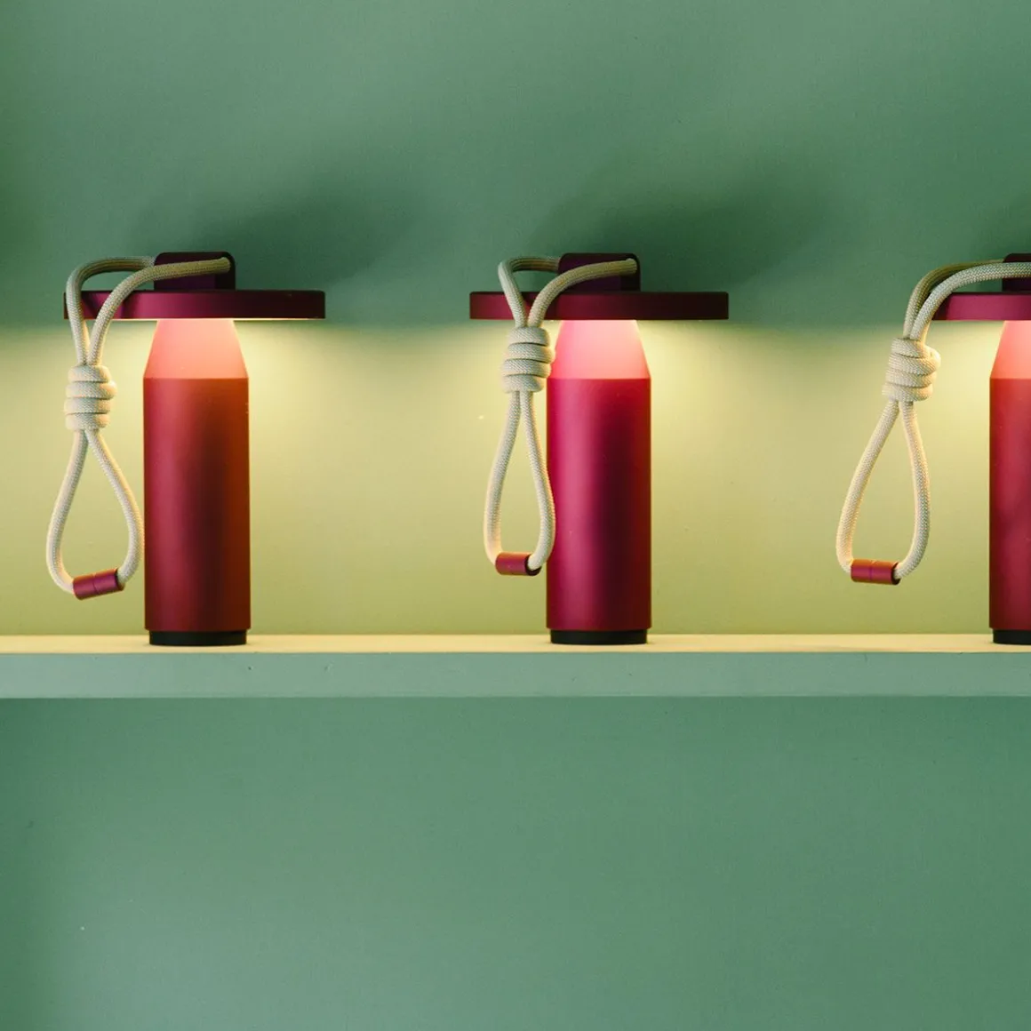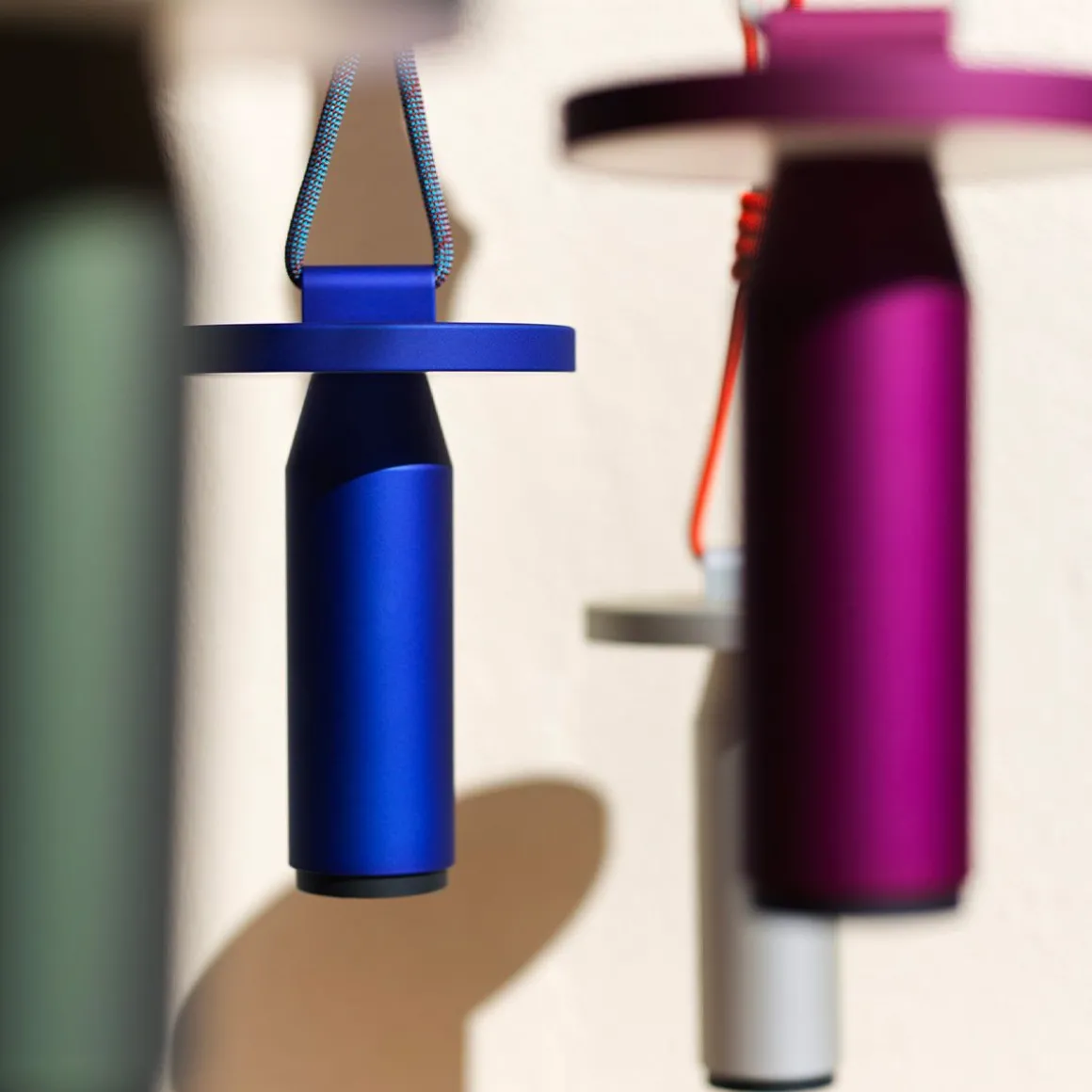 Matériaux : Aluminium, verre acrylique, polycarbonate et polyester (Le pied de la lampe est fait en ABS recyclé à 20% est résistant aux chocs, et l’aluminium anodisé dont la lampe est recouverte est recyclé à 20% et résistant à la corrosion)