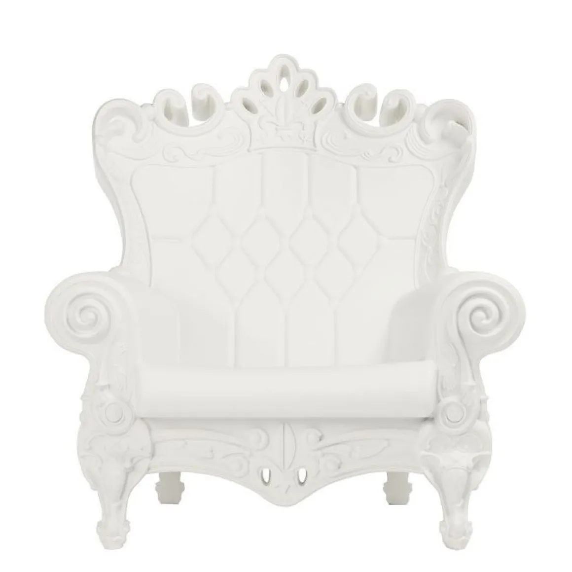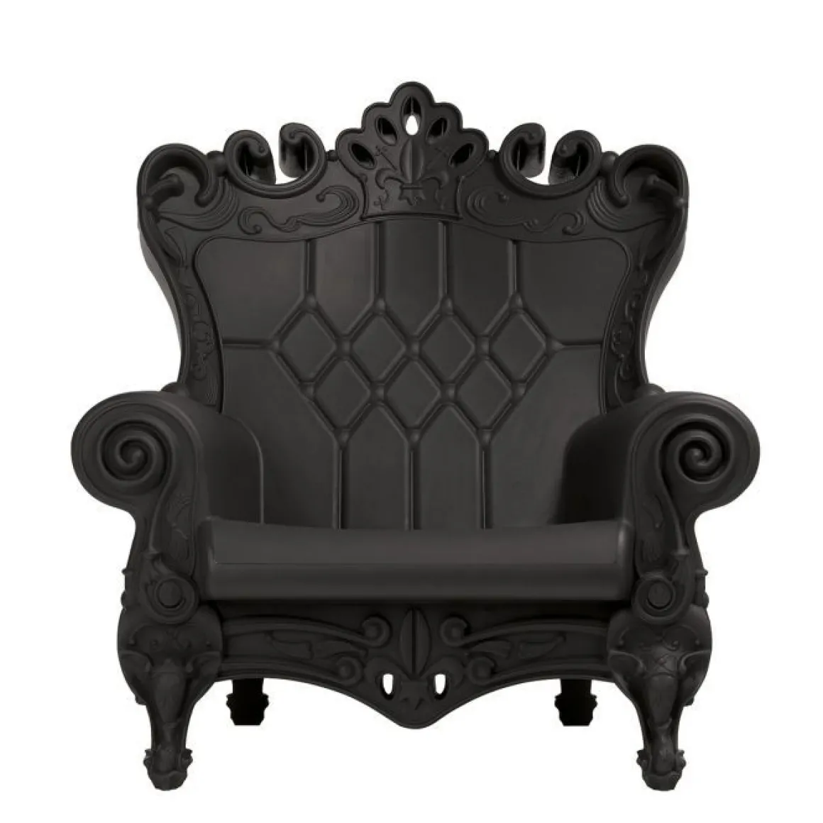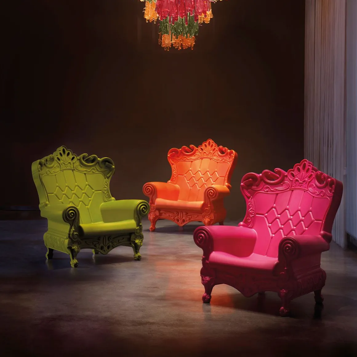 Le fauteuil Queen of Love fait partie de la gamme originale de produits Design of Love Collection récemment présentée par SLIDE caractérisée par des détails et des finitions de style rococò. Élégante, ironique et dédaigneuse mais essentiellement unique et particulière, la Queen Of Love est non seulement une assise luxueuse de style baroque, mais aussi un article de design irrésistible qui s’adapte à tous les types d’agencements, aussi bien extérieur qu’intérieur comme des salons, des boutiques, des restaurants et des bureaux.
