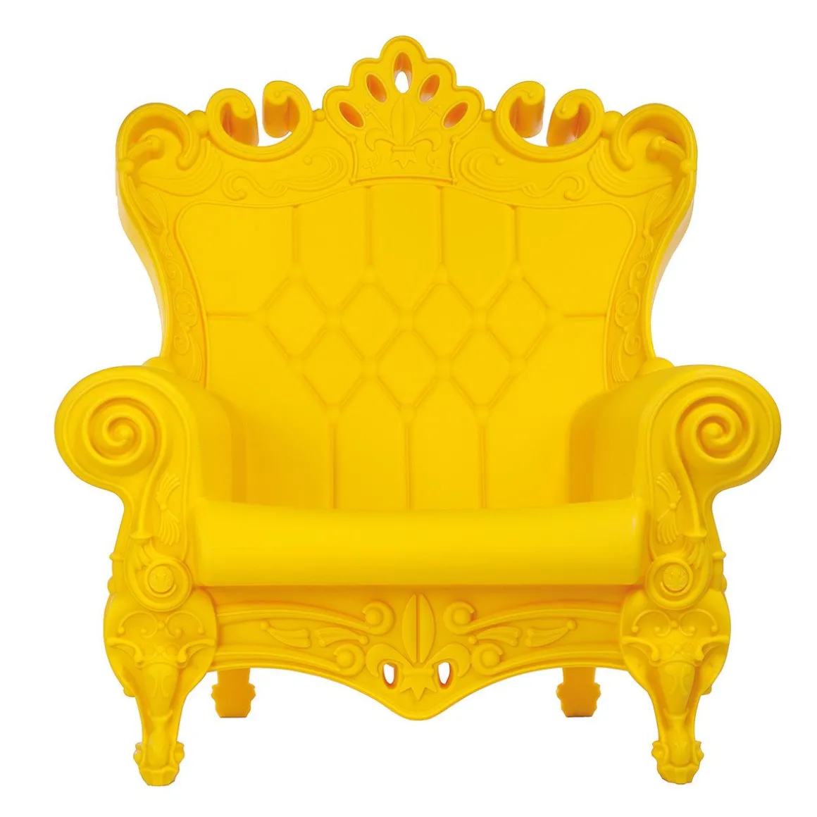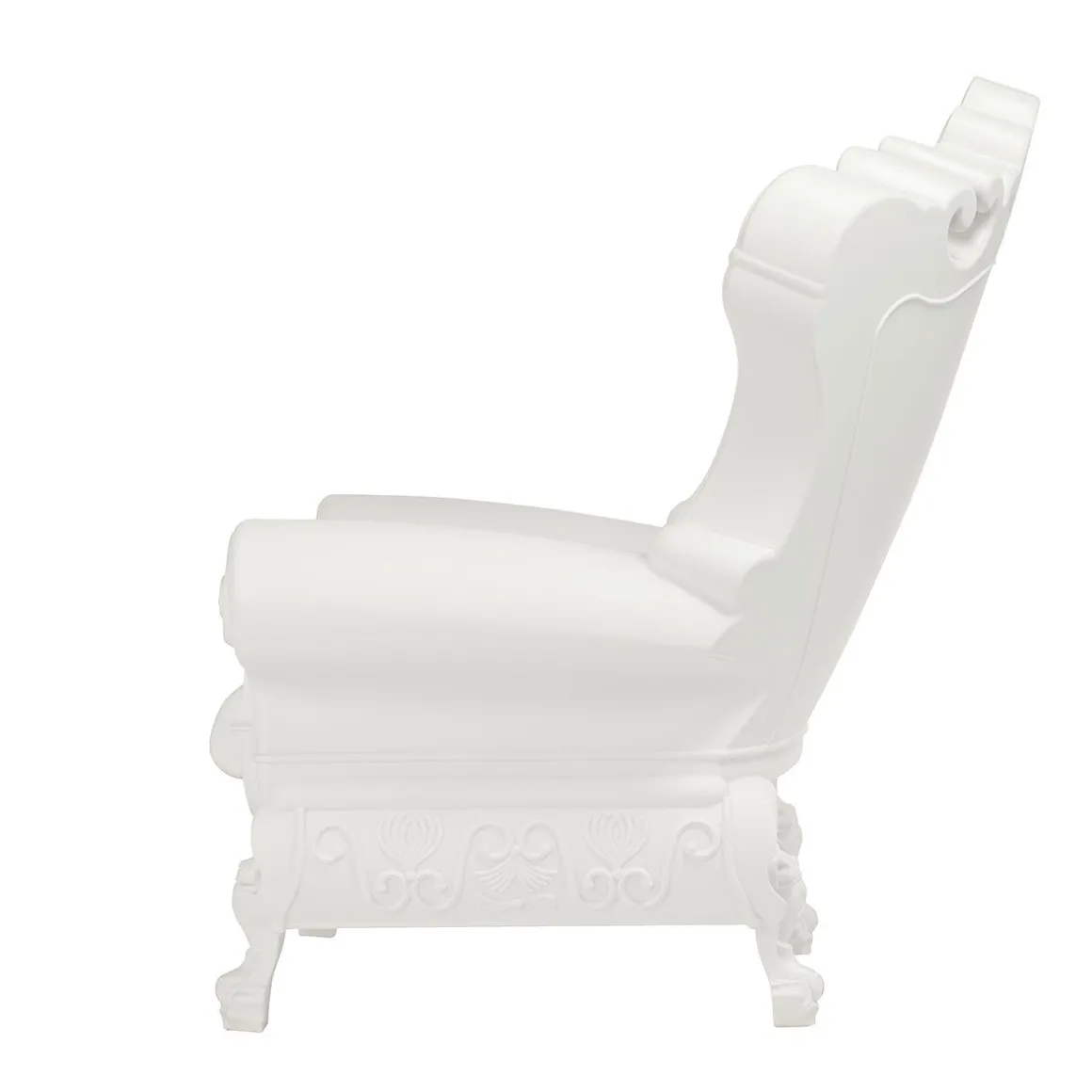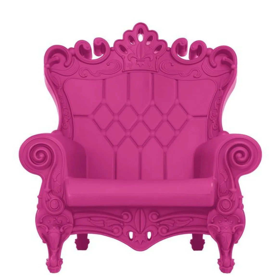 Le fauteuil Queen of Love fait partie de la gamme originale de produits Design of Love Collection récemment présentée par SLIDE caractérisée par des détails et des finitions de style rococò. Élégante, ironique et dédaigneuse mais essentiellement unique et particulière, la Queen Of Love est non seulement une assise luxueuse de style baroque, mais aussi un article de design irrésistible qui s’adapte à tous les types d’agencements, aussi bien extérieur qu’intérieur comme des salons, des boutiques, des restaurants et des bureaux.