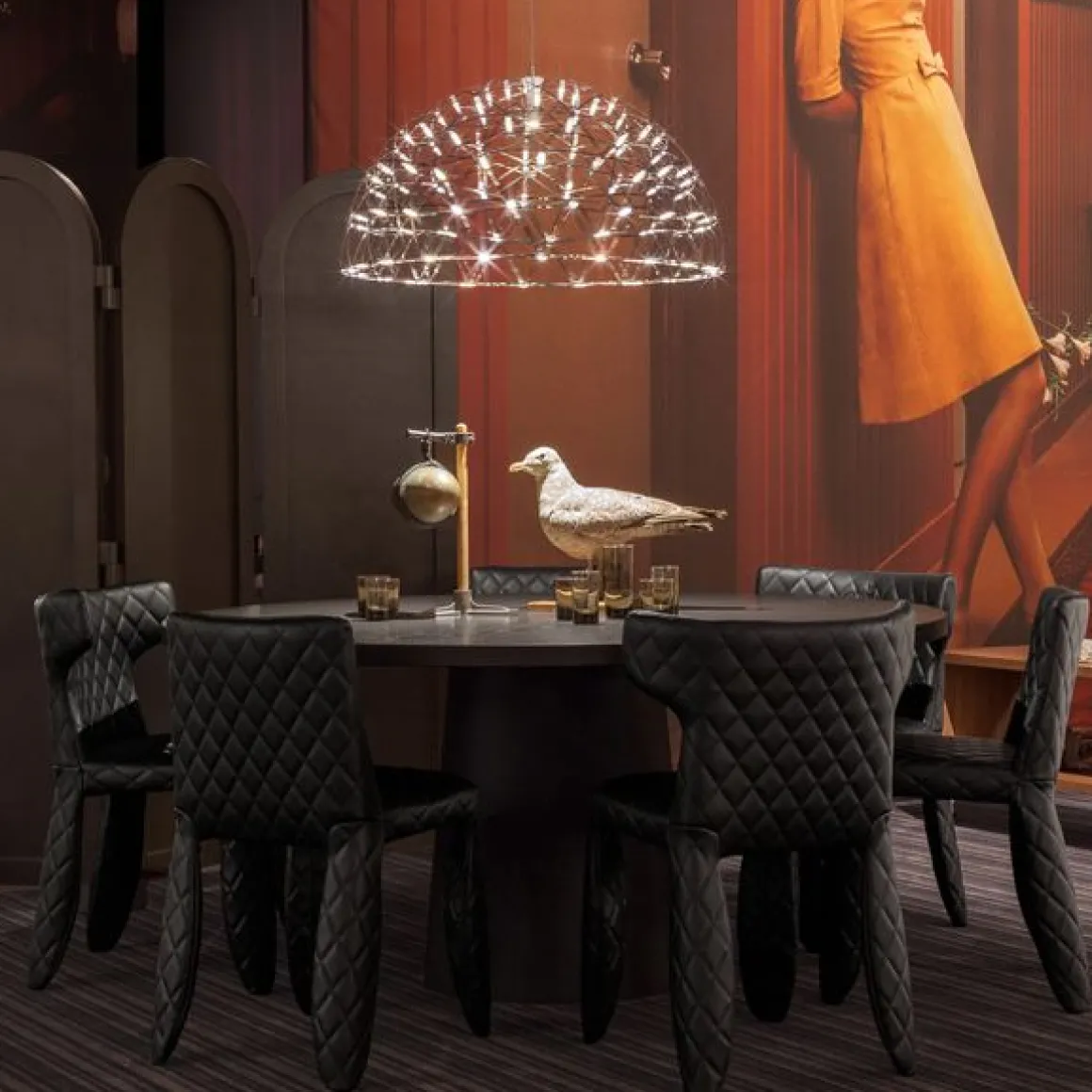 La suspension Raimond Dome 79 est une construction en inox faisant office de support et qui a comme alimentation une myriade de diodes lumineuses. Inspirée de la géométrie triangulaire du dôme géodésique, la circulaire et les lumières ovales sont faites avec une couche intérieure et extérieure pour lui donner plus de force. La structure intérieure et extérieure conduit l’électricité par le LEDS placées au niveau des nœuds de la structure. Son style en forme de dome renvoie un effet design et raffiné pour une déco toujours plus élégante.