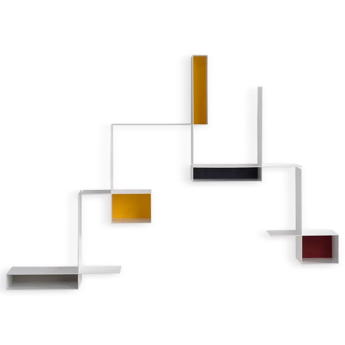 Randomissimo représente « l’involution”, le retour aux origines, du concept Random ; elle accompagne le “signe de maturité” de la collection actuelle vers sa réduction absolue, la transformant ainsi en un simple trait graphique, en une apostrophe sur le mur. Un complément pour objets personnels : réduit dans ses dimensions, changeant, ludique, complémentaire et modulable. Randomissimo est l’expression des principes identitaires de MDF Italia : réduction, simplicité formelle / technique et une forte empreinte émotionnelle. Un produit qui dévoile immédiatement, à travers sa composante ludique et sa gamme chromatique, sa capacité à réaliser de petits regroupements ou des compositions infinies à l’esprit surréaliste.