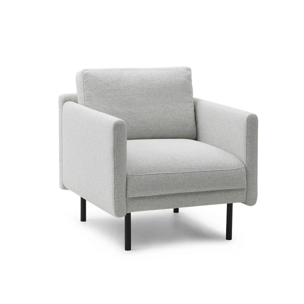 Rar Fauteuil de Normann Copenhagen par Simon Legald. La collection Rar tire son nom du mot danois signifiant agréable, faisant allusion à son assise moelleuse et confortable et à son expression simple. La collection comprend un fauteuil, un canapé 2 places et un canapé 3 places, tous avec le même langage design simpliste et intemporel. Rar est fabriqué à partir de mousse PU avec une structure de renfort en bois à l’intérieur et des pieds en acier enduit de poudre et est disponible en deux textiles différents et une option en cuir.