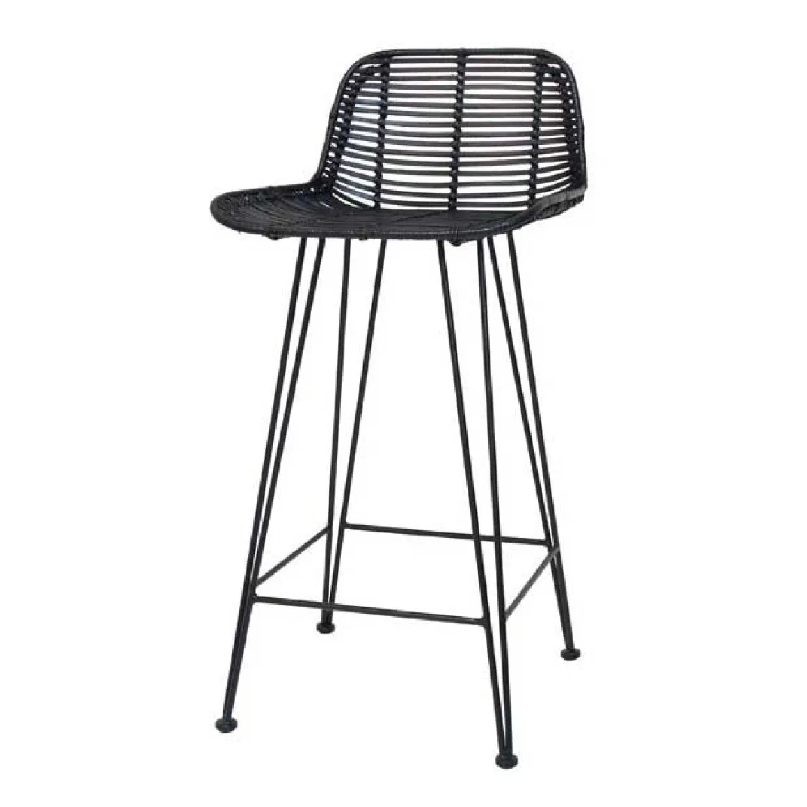 Rattan – tabouret de bar de HK Living. Tabouret de bar en rotin tressé à la main et peint en noir. Ses pieds sont en métal laqué noir. Ce modèle phare au design intemporel s’intègre parfaitement dans toutes les cuisines, notamment avec un îlot central. Sa hauteur d’assise de 66 cm en fait un tabouret de bar idéal.