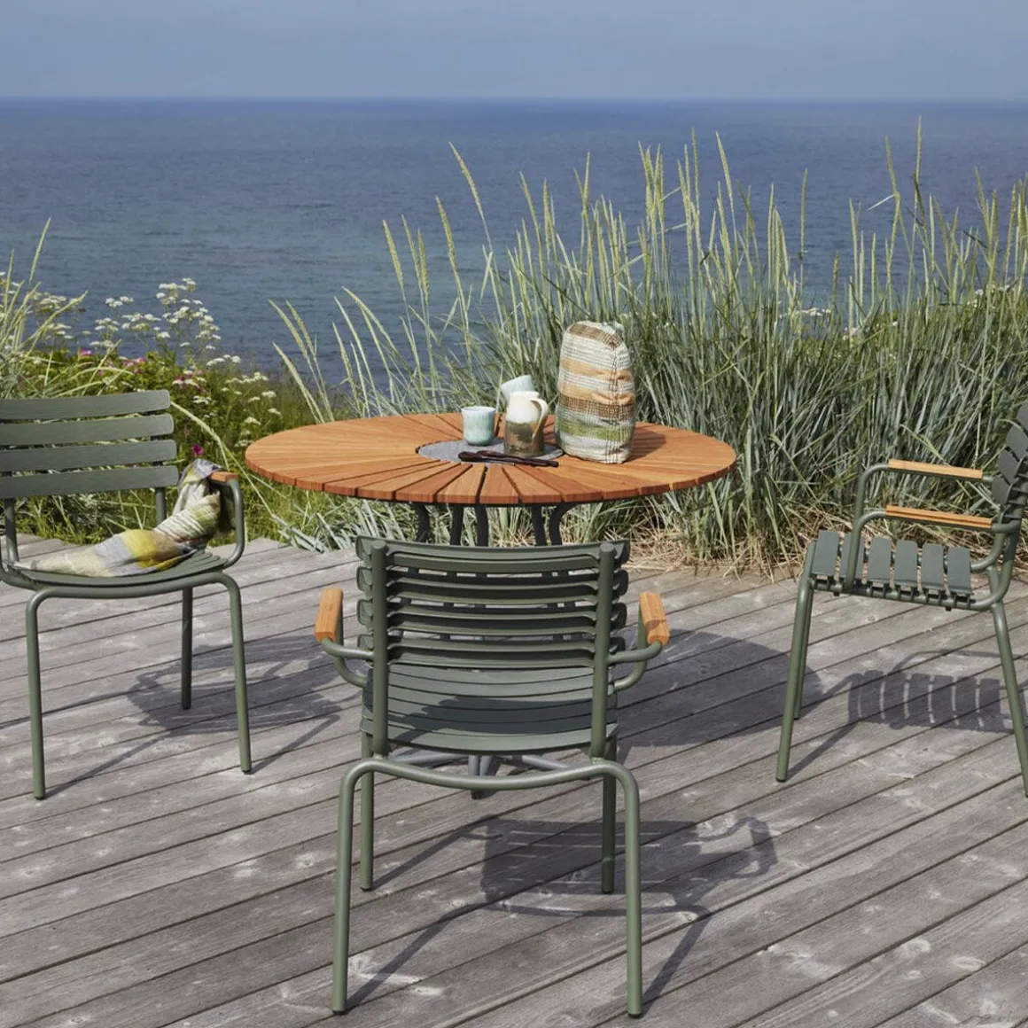 ReCLIPS est une chaise de salle à manger avec de larges lamelles en plastiques éclipsées sur un cadre en aluminium enduit de poudre légère. Les lamelles sont fabriquées à partir de déchets plastiques ménagers danois et produites au Danemark. La technologie de réutilisation des déchets ménagers en plastique pour la production de meubles est développée au Danemark. Donc, en regardant ReCLIPS, vous regardez essentiellement le résultat du mélange du design danois et de l’innovation danoise dans l’application de nouvelles idées et de nouveaux matériaux dans une chaise. Les chaises de salle à manger ReCLIPS sont disponibles en 4 couleurs mono avec le choix d’ajouter des accoudoirs en bambou. Le cadre en aluminium combiné avec les lamelles en plastique protégées contre les UV, réduisent au minimum l’entretien.