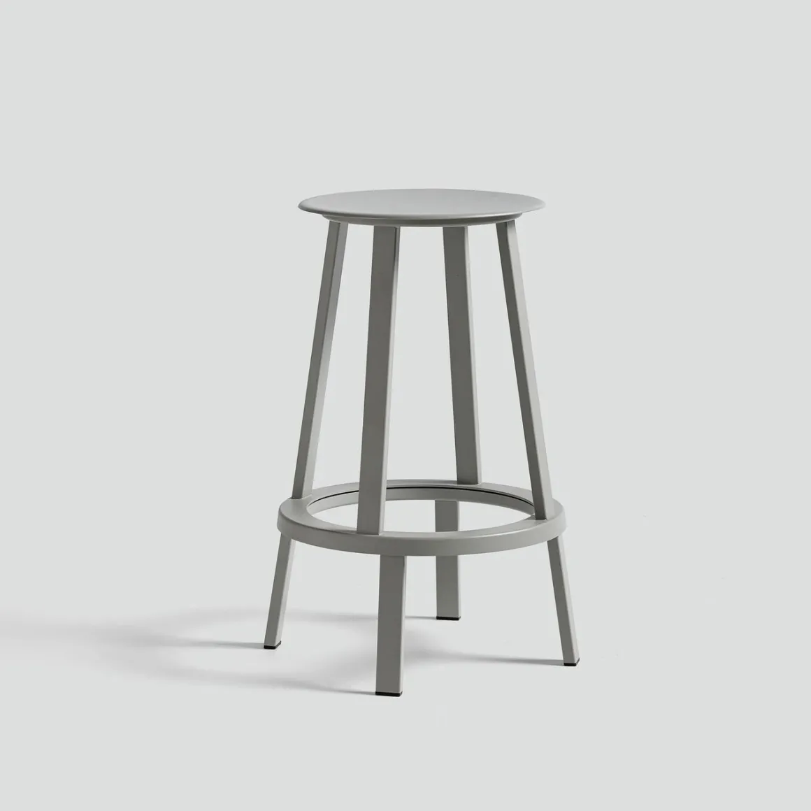 Revolver Tabouret de Hay. Le tabouret Revolver a une assise ronde et un repose-pieds circulaire avec un système de roulement à billes intégré qui permet de le faire pivoter de 360°. Dessiné par le designer new-yorkais Leon Ransmeier, ce tabouret haut en métal possède une silhouette atypique avec son système de rotation surprenant ! Revolver se compose de deux parties superposées assez distinctes visuellement. La base fixe en bas est surmontée d’un anneau rotatif qui permet à la partie supérieure du tabouret de pivoter à 360 °. Toute la partie supérieure du tabouret est mobile : ce n’est pas seulement l’assise qui pivote mais également les quatre pieds supérieurs. Ce tabouret illustre le travail de Ransmeir avec ses meubles graphiques qui ne révèlent pas à première vue leur spécificité fonctionnelle. Un tabouret fonctionnel et design étonnant !