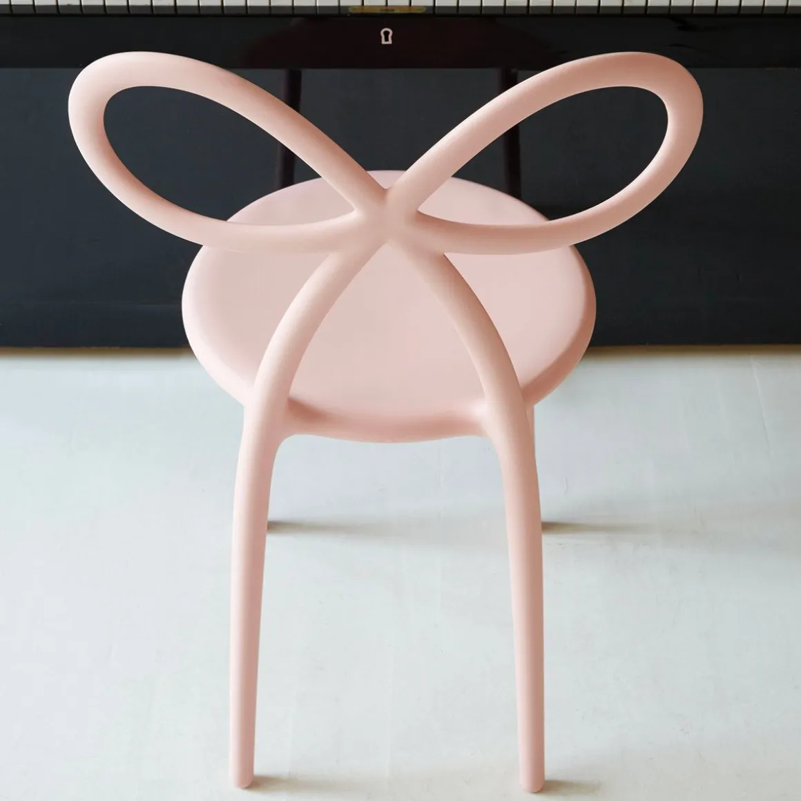 Ribbon chair de Qeeboo par Nika Zupanc. La Ribbon Chair, évoquant un univers extraordinairement romantique, est la chaise féminine par excellence. Une chaise iconique, à forte identité, caractérisée par un ruban conçu comme dossier. Le ruban, symbole vivant de cadeau et de fête, est traduit par la créatrice avec des lignes douces, légères et essentielles.