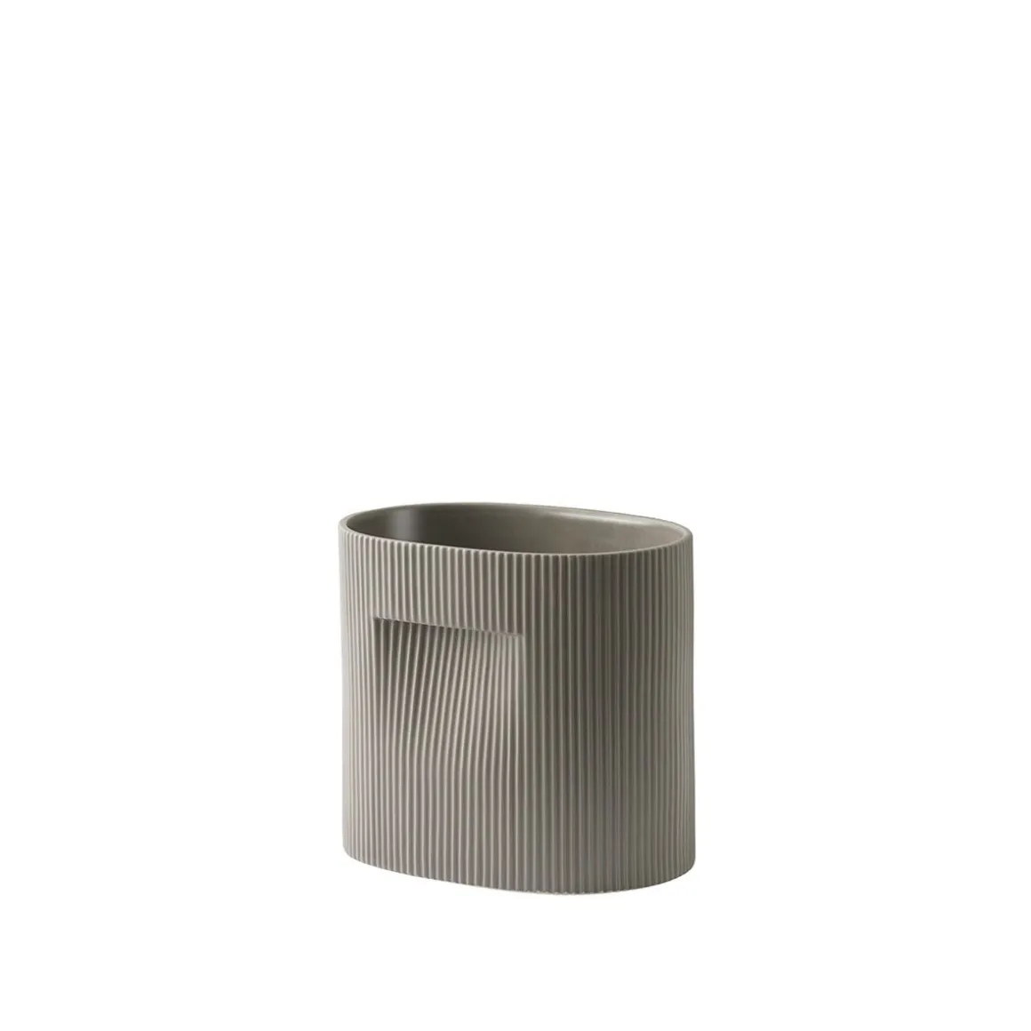Ridge planter de Muuto par Studio Kaksikko. Le pot de fleurs Ridge apporte l’expression élégante et sculpturale du vase Ridge à un pot de fleurs polyvalent et fonctionnel, parfait pour ajouter une touche de nature à l’intérieur. Fabriqué à partir de faïence de haute qualité, le pot Ridge Planter présente un extérieur mat, un bord nervuré et un intérieur vitré pour un look organique et profond. Des poignées subtiles de chaque côté facilitent les déplacements entre les espaces. Disponible en trois tailles – la taille 253 x 153,5 x 130 mm est idéale pour les plantes, herbes ou plantes succulentes de petite à moyenne taille et parfaite pour les rebords de fenêtre, les bureaux, les étagères, les cuisines et les salles de bains. La taille 188 x 142 x 153 mm offre une option polyvalente et maniable pour les plantes de petite à moyenne taille, tandis que la taille 267 x 195 x 240 mm est idéale pour les plantes ou les groupes plus grands, et parfaite pour les salons, les coins et les entrées.
