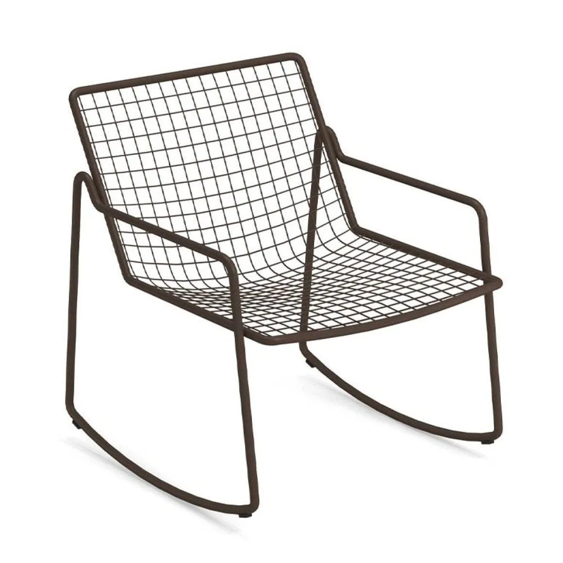 RIO R50 est une collection complète de sièges, comprenant : chaise et petit fauteuil dining, fauteuil lounge disponible également dans la version à bascule, tabouret et table basse. RIO R50 présente une structure en tube d’acier ASFORM, acier de haute qualité doté de capacités mécaniques élevées et d’une haute résistance au poids. Le tube d’acier se caractérise par un « R » bien visible dans la zone de jonction entre l’assise et le dossier. Toutes les soudures de nature structurelle sont effectuées suivant la technologie Ming, qui assure une meilleure résistance aux sollicitations et réduit le risque de rouille, tandis que, pour une plus grande précision, le grillage en ronds d’acier est électrosoudé à la structure. Comme pour tous les produits EMU en acier, il est prévu un pré-traitement de cataphorèse, puis l’application d’une peinture poudre thermodurcissable ; le produit est ainsi recouvert d’une couche de peinture d’une épaisseur homogène, présentant un degré élevé d’adhérence et de résistance. La présence d’embouts en nylon à l’extrémité des pieds permet de protéger et de mieux déplacer le produit.
