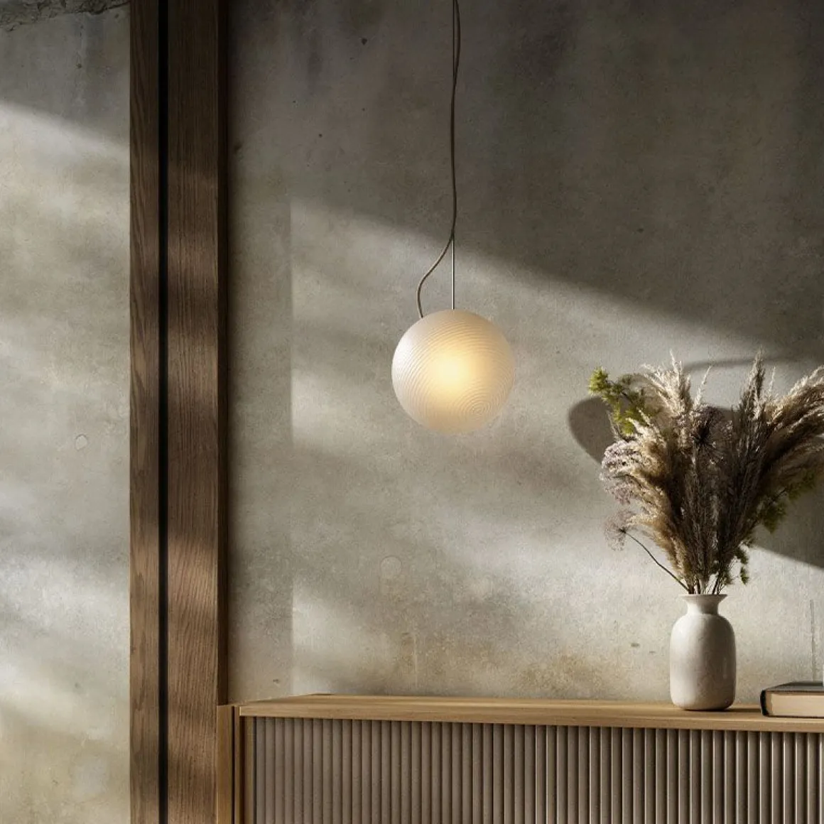 Bright Ripple est fabriqué à partir de verre soufflé à la bouche et est livré avec un couvercle en laiton massif.