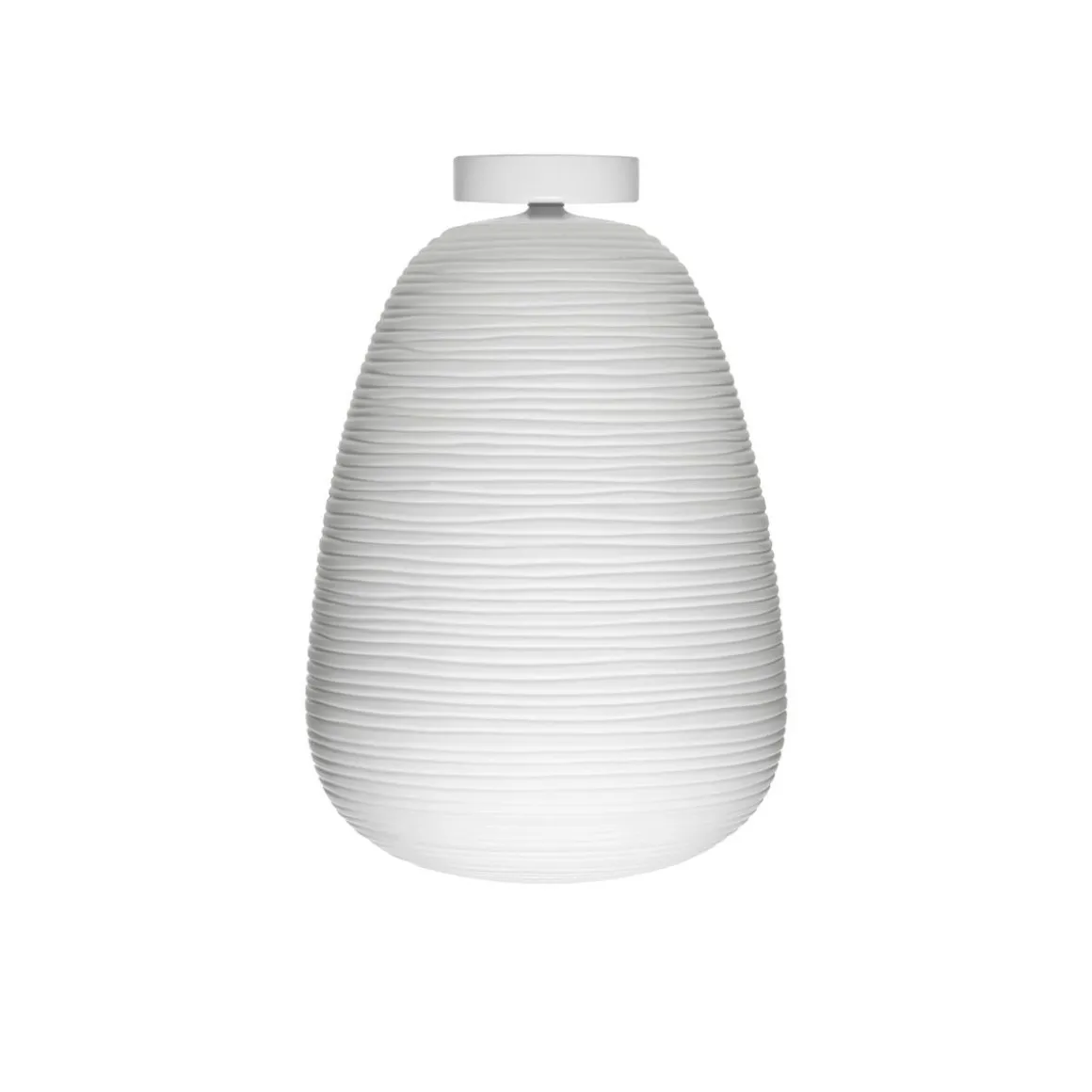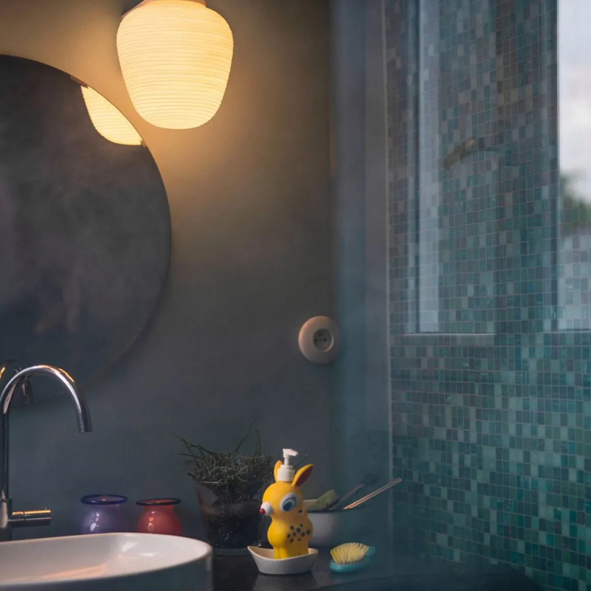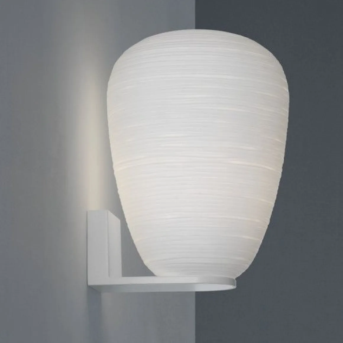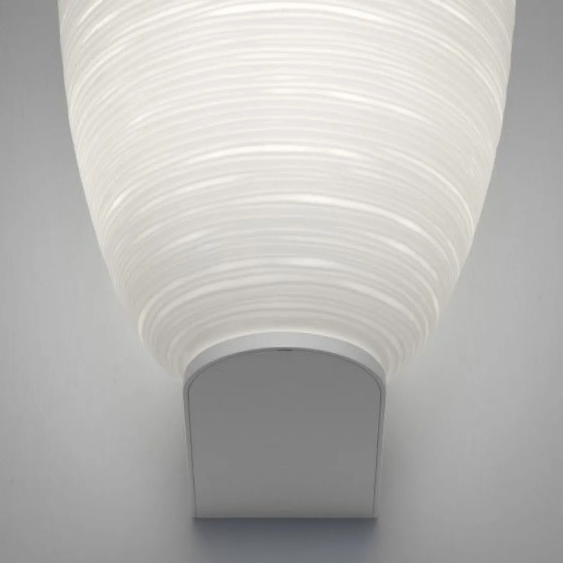 Les lampes Rituals en verre soufflé sont caractérisées par la surface du diffuseur striée de lignes irrégulières. Rituals 1 présente un volume qui ne passe pas inaperçu, parcouru par de légères ondulations qui contribuent à produire une lumière chaude et émotionnelle. Semblable au piédestal d’une oeuvre d’art, le support en forme de L de la version murale permet différentes solutions d’installation, vers le haut ou vers le bas, ou dans une version avec deux diffuseurs. Rituals 3 est caractérisée par un petit volume qui lui permet de s’adapter à tous les types de contextes, et par la surface ondulée de son diffuseur qui produit une lumière chaude et émotionnelle.