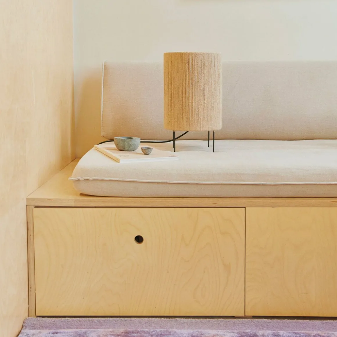 RO lampes de Made by Hand. La lampe RO s’inspire des anciennes traditions artisanales des années 1920 et 1930, où un simple abat-jour était fait de ne et de fils généralement noués autour d’un support en bois. L’abat-jour RO est fait de fil de jute noué autour d’une base simple, conformément aux anciennes traditions danoises. Le nom de la lampe RO en danois fait référence au calme et au simple sentiment de bien-être humain.