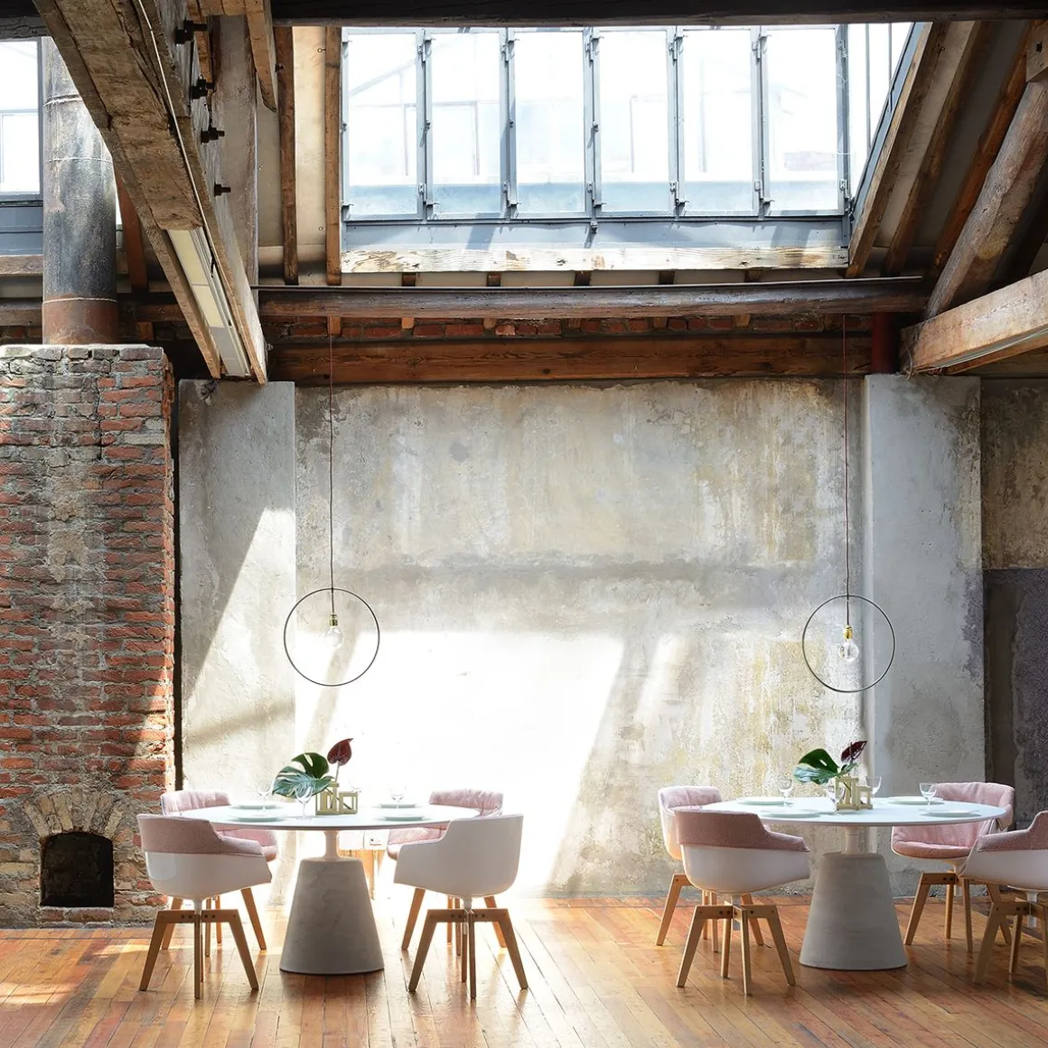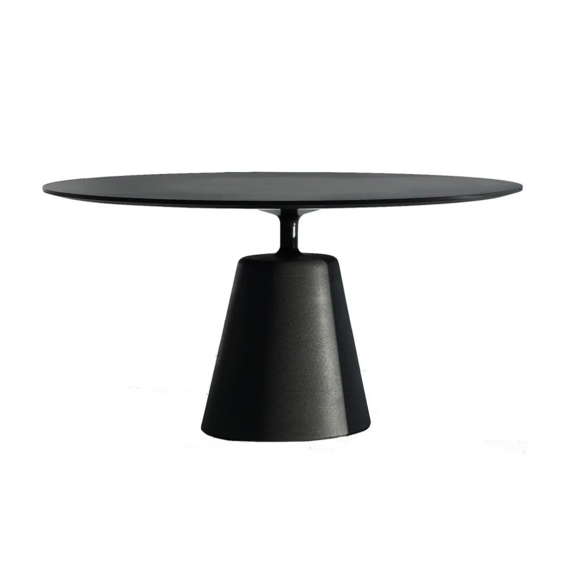 Les tables sont disponibles avec deux typologies de bases : large (avec un encombrement au sol de 50 cm) pour le plateau de 120 ou 140 cm