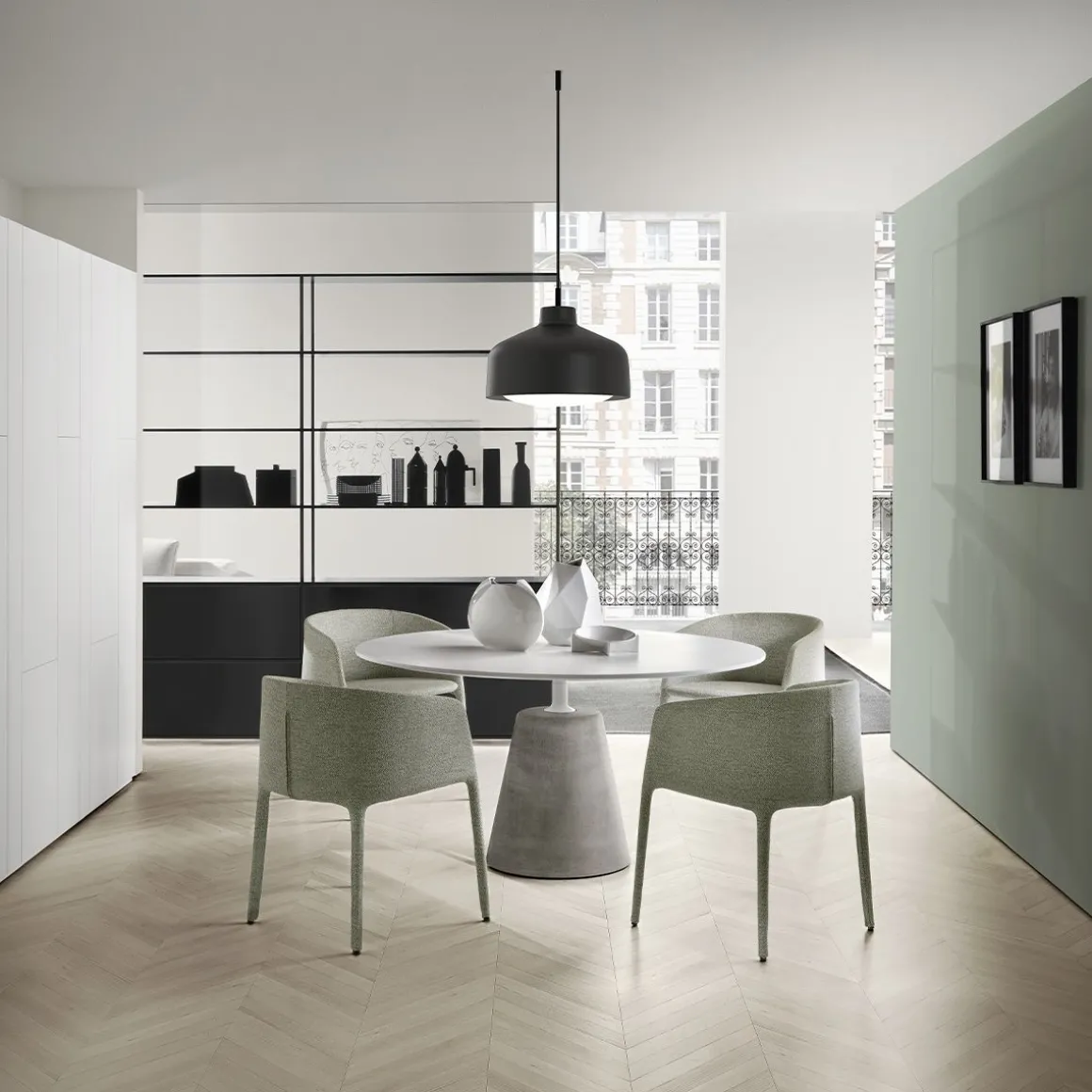 Une nouvelle icône indémodable d’une table ronde à la silhouette fluide et élégante, qui révèle complètement la nature de ce qu’elle représente: «une table ronde» qui lévite apparemment au-dessus d’une base inorganique solide. Un mélange de matériaux naturels et industriels, qui se fondent dans un produit unique au design souple suivant la même philosophie que la collection Flow. Un objet raffiné et solide, léger et stable, radical et sensuel. Rock Table est une table adaptée aussi bien au milieu domestique qu’au milieu contract, déclinée en deux dimensions et finitions.