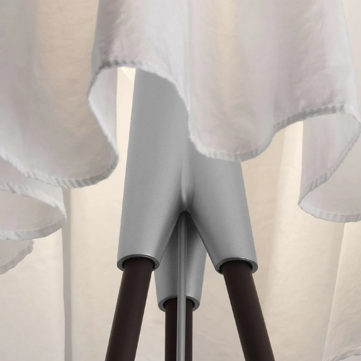 Créé en 1994 par Philippe Starck, le lampadaire Rosy Angelis associe une apparence à la fois minimaliste, poétique et humoristique : le diffuseur en tissu spécial ultra-léger est associé à un jupon…la lumière est sous le jupon… Le diffuseur vient se poser sur un support à trois branches, disponible en acier verni gris.