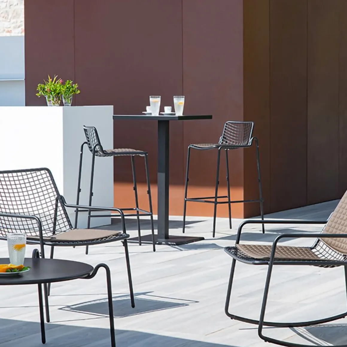 La série Round mise sur des lignes arrondies pour des sièges d’un extrême confort, tandis que les tables se caractérisent par un design pur et essentiel. Les projets se basent sur la valorisation des matériaux associés à la technique novatrice de l’emboutissage par le biais de laquelle la tôle, comprimée entre deux moules en acier, s’exprime dans des formes tridimensionnelles. Entièrement réalisée en acier traité anti-corrosion, , elle est à la fois table d’intérieur et d’extérieur. Design et élégante, elle s’adapte à différents types d’environnement.