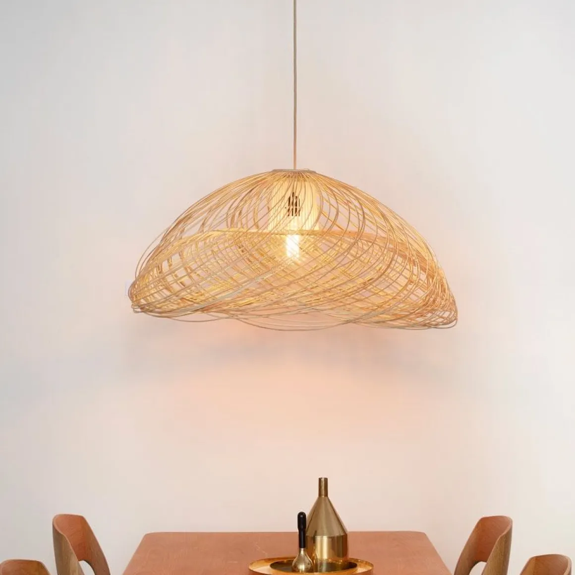 Satelise est une suspension ronde faite en matériaux naturels et designé par Elise Fouin. Grâce aux tiges de rotin, son jeu de lumières apportera de la légèreté et une ambience chaude à vos intérieur.