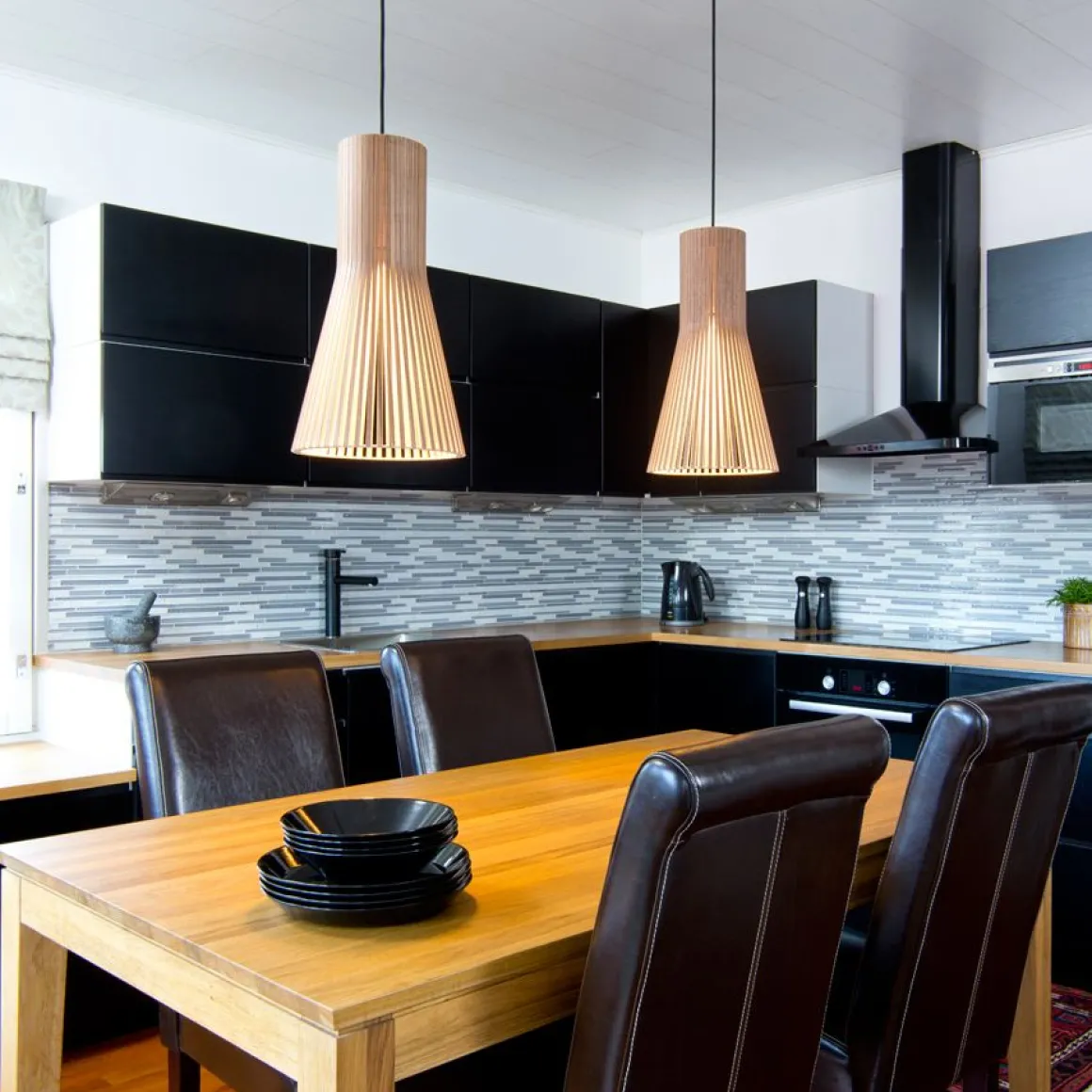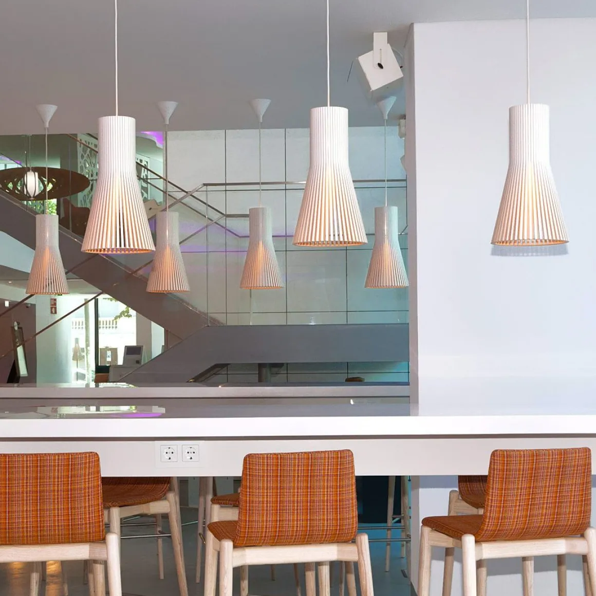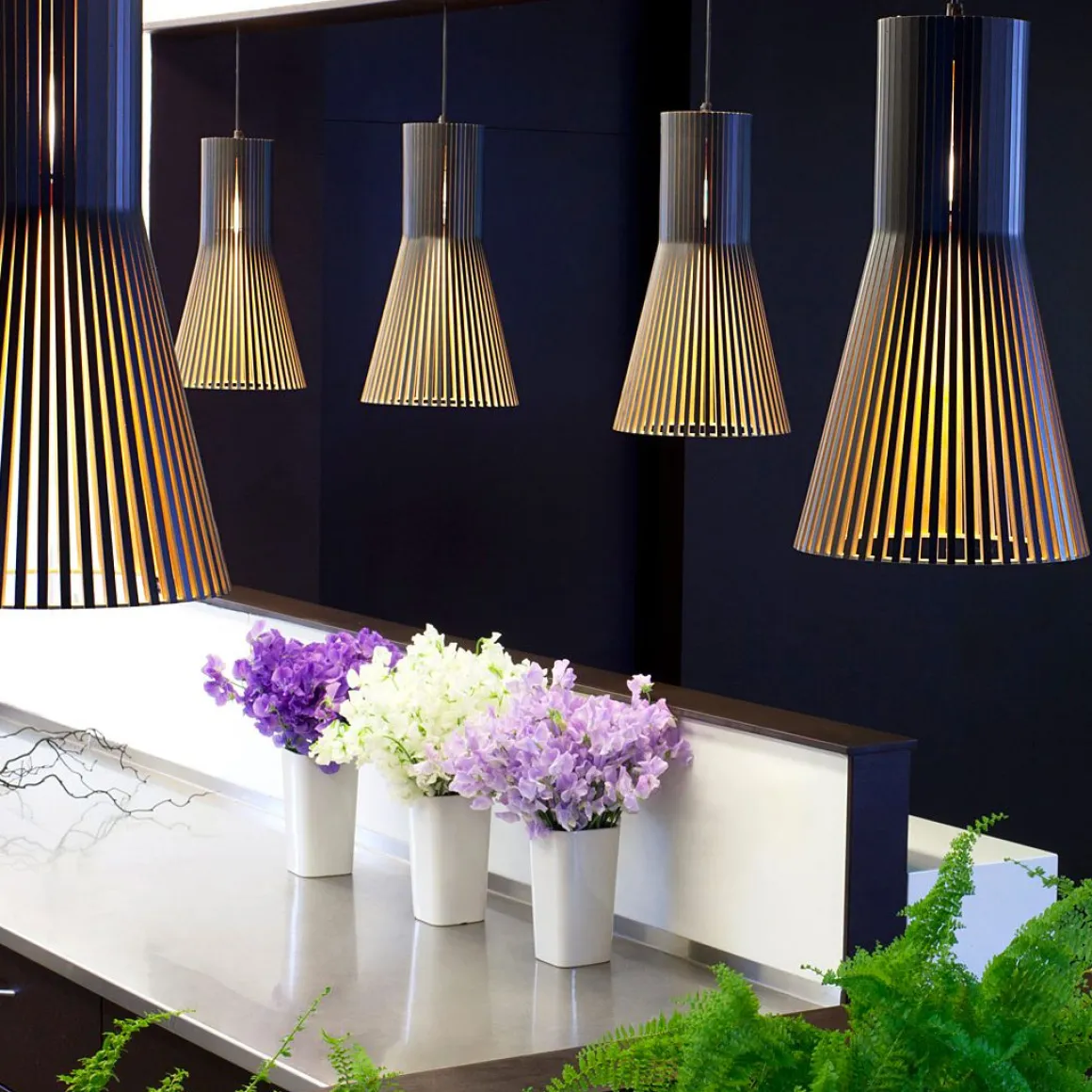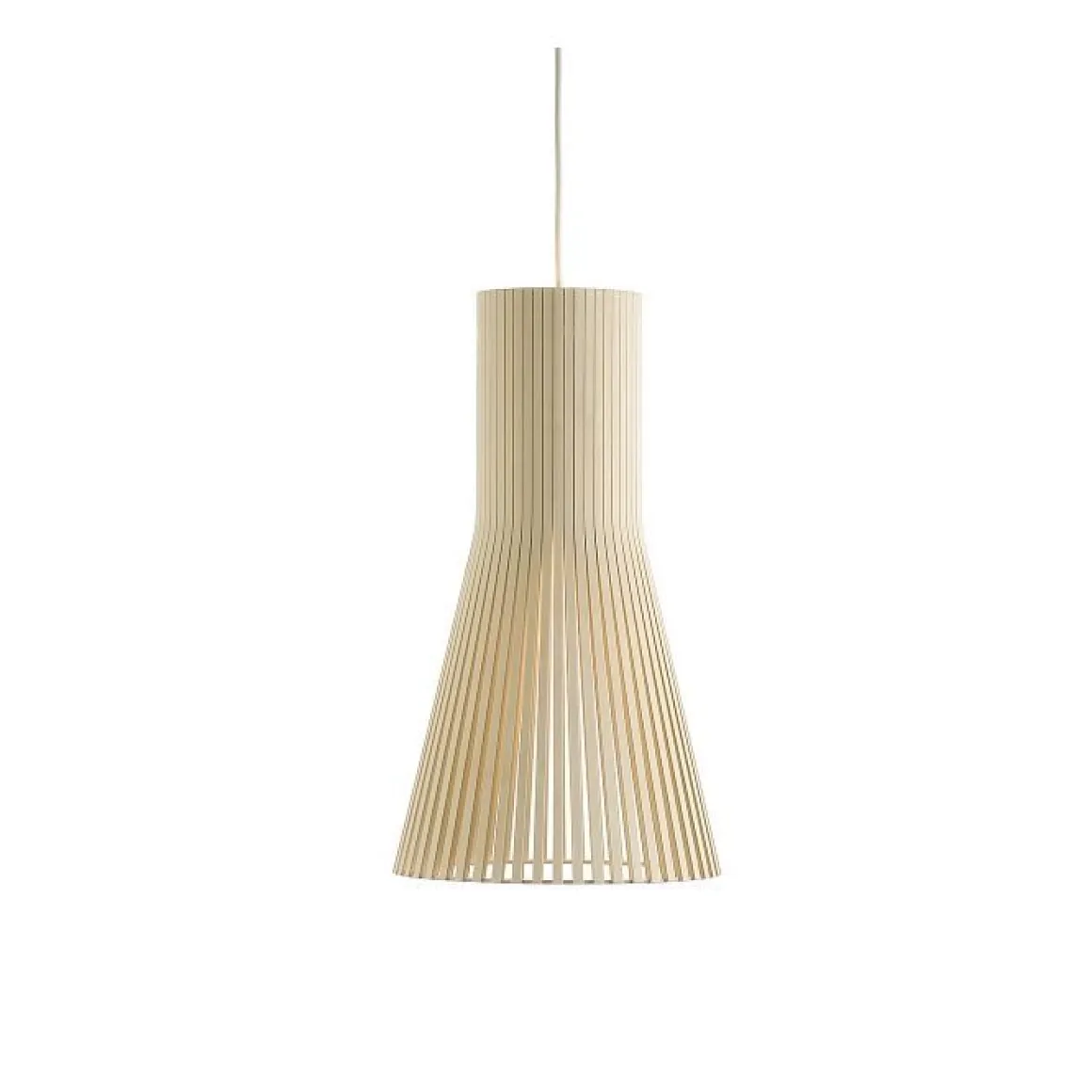 La suspension Secto est entièrement fabriquée à la main par des artisans hautement qualifiés et certifiés de Finlande. Les lattes des abat-jours sont reliées par des anneaux réalisés en « aircraft plywood », matériau utilisé en aéronautique car hautement résistant à la chaleur. Secto Design a une démarche citoyenne sur la réduction de son empreinte écologique en s’approvisionnant localement en bois et en recyclant ses déchets comme bois de chauffage, en jouets pour les crèches ou pour les écoles de menuiserie. Cette suspension élégante et design s’adapte à différents types d’intérieur tout en y apportant une touche de modernité.