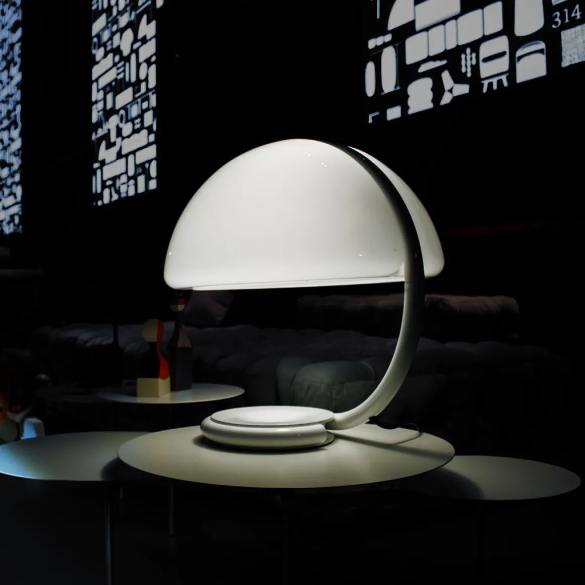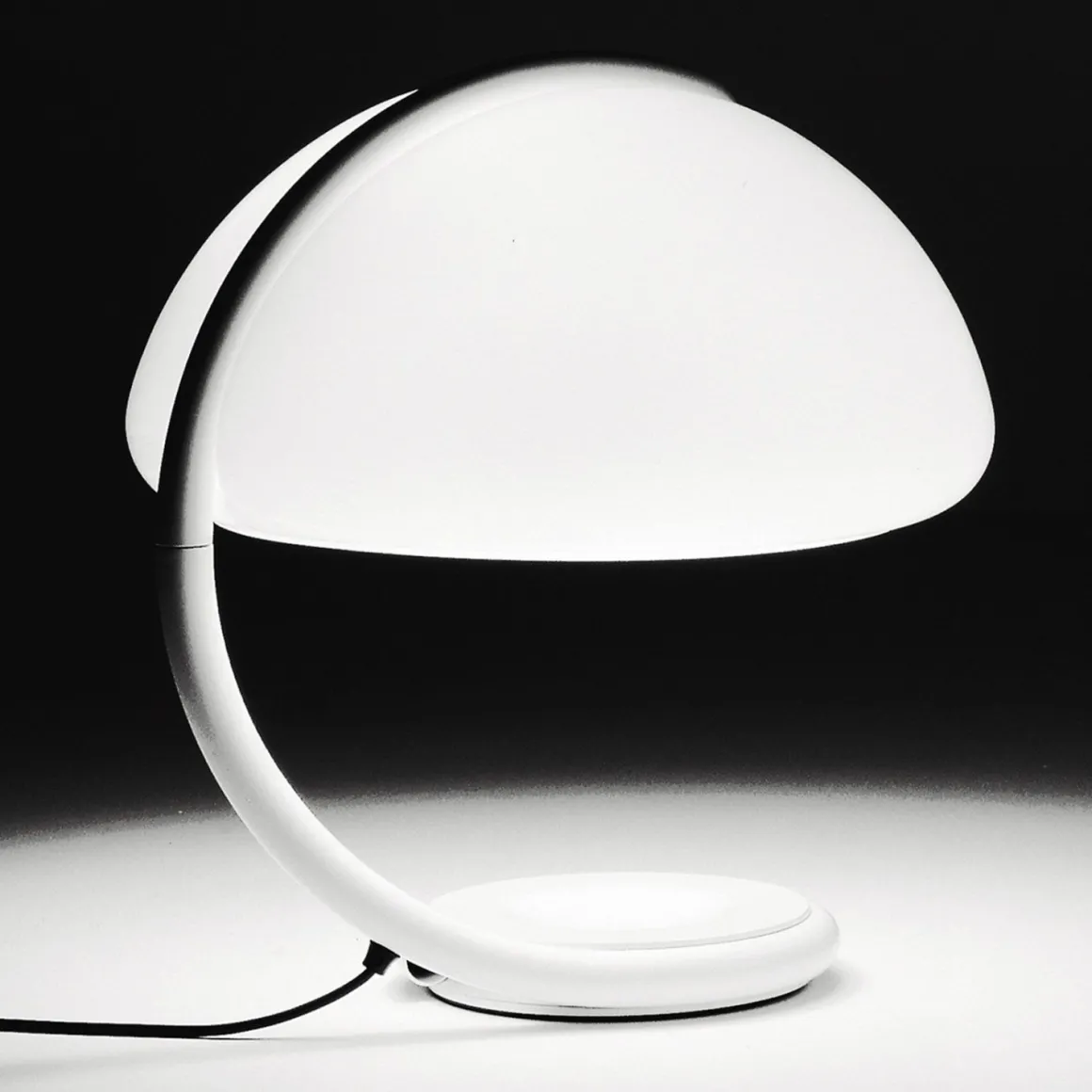 Symbole d’essentialité formelle, d’adaptabilité et de dynamisme, Serpente est aujourd’hui encore, 50 ans plus tard, l’une des lampes icônes figurant sur le catalogue Martinelli Luce. Son design intemporel et l’utilisation de solutions techniques, tels que le système de rotation du support, ont fait d’elle la base de nombreux produits introduits par la suite dans le catalogue.