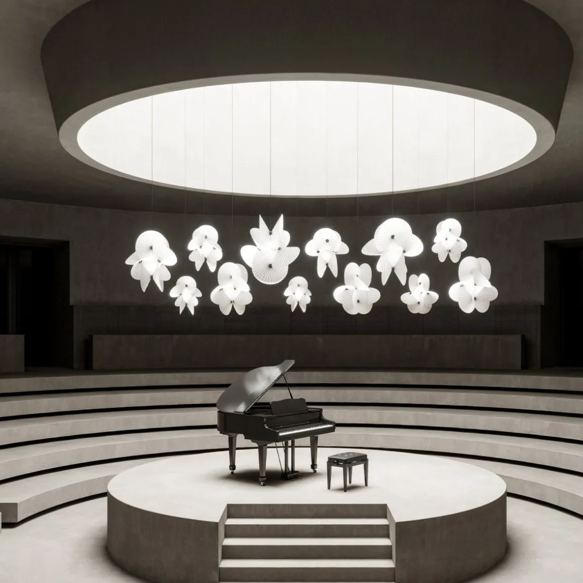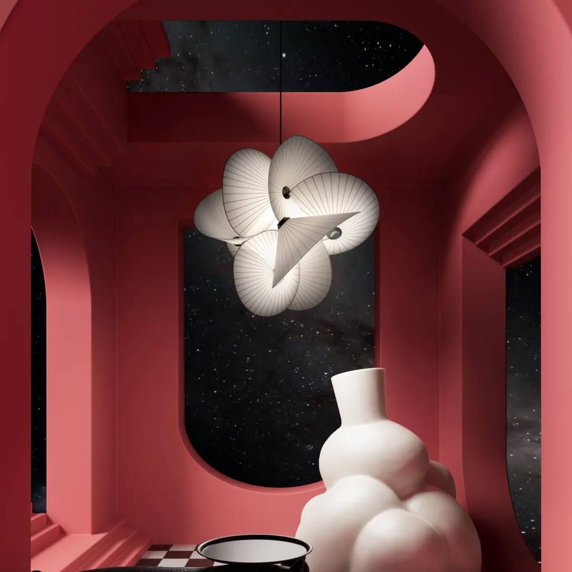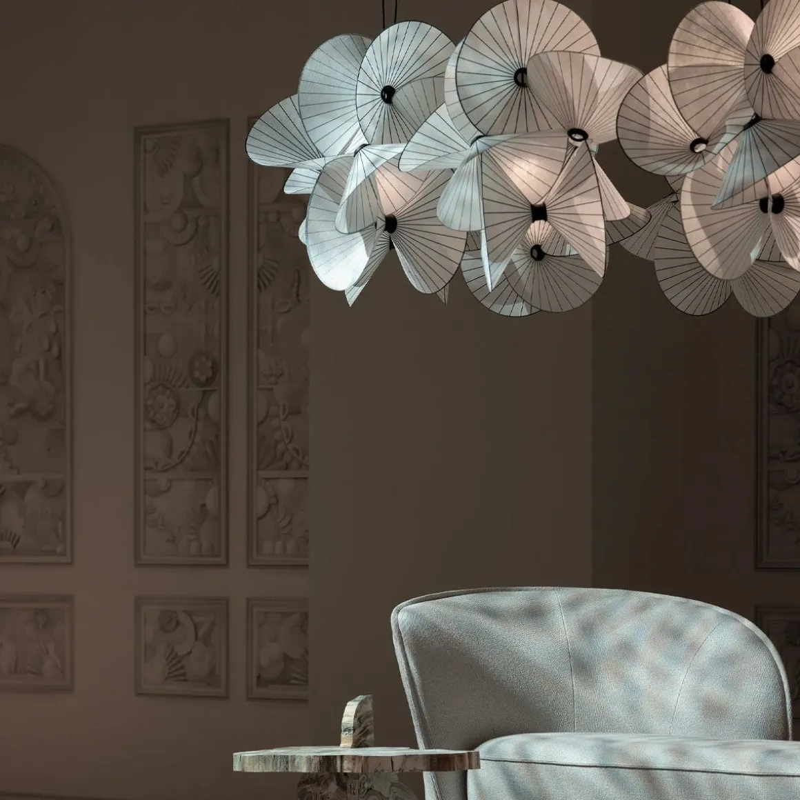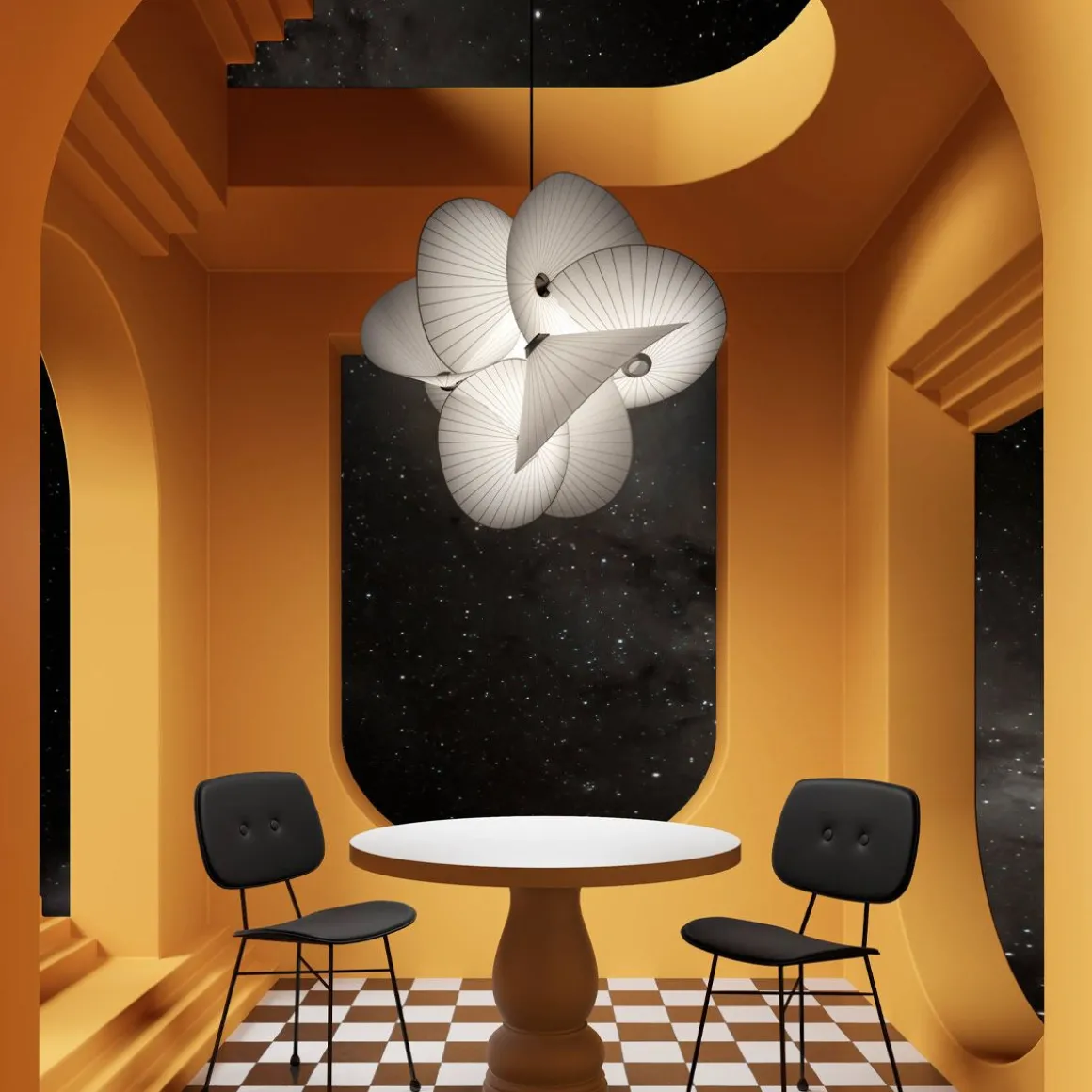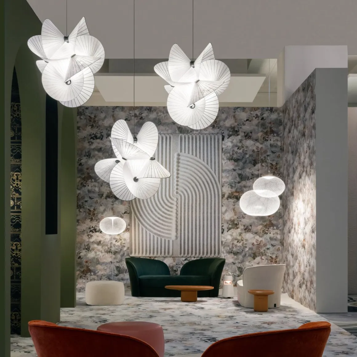 Matériaux : Abat-jour en PES non tissé imprimé, suspension en acier revêtu