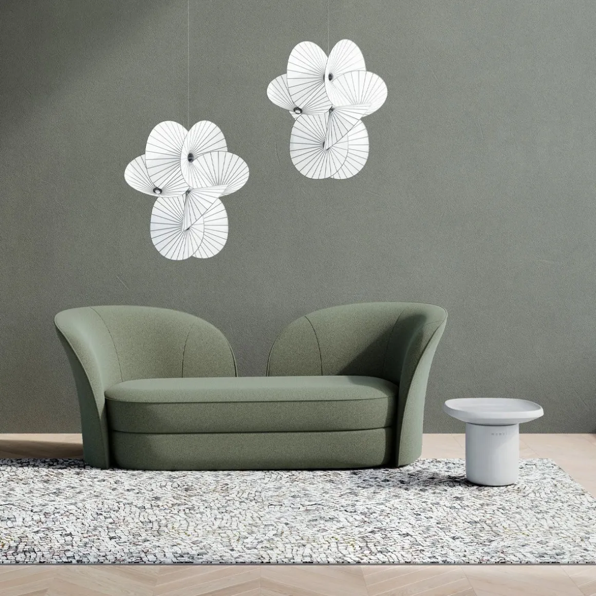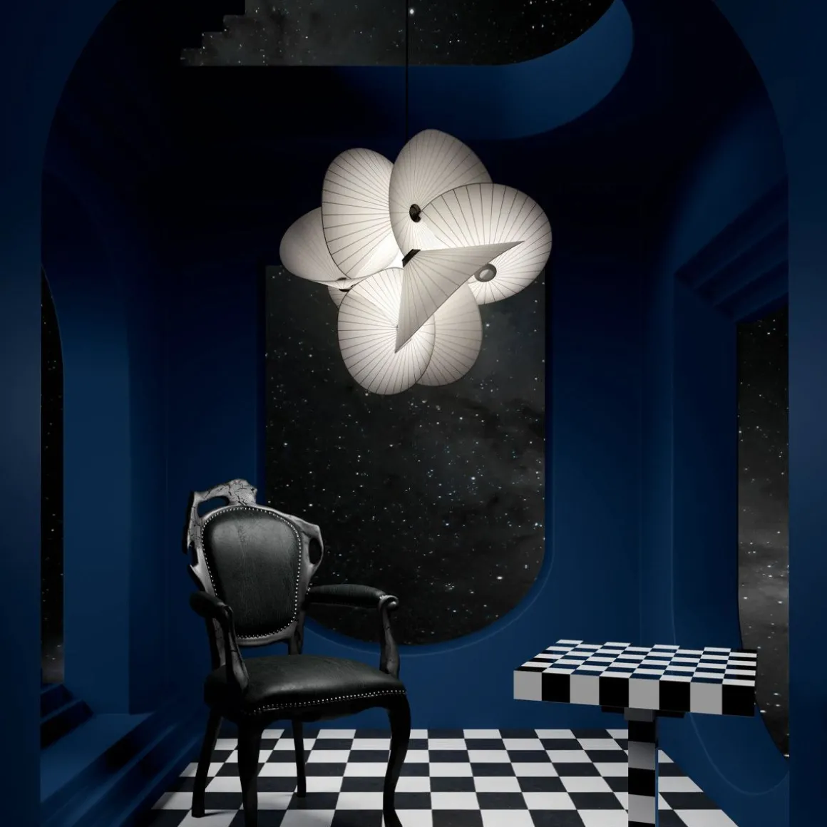 Serpentine Light par Front est une lampe à suspension aérée faite de rebondissements élaborés. La conception de l’éclairage est née de la torsion et de la rotation d’un morceau de papier. En jouant avec la tension et le flux naturel, découvrant les limites des différentes formes que le papier pouvait adopter. Les lignes sombres créent l’effet d’une spirale ascendante sans fin. Le flux et la courbe du matériau presque translucide sont très naturels et diffusent la lumière de manière homogène. Le caractère fort du design et l’illusion de mouvement perpétuel en font la lampe parfaite à accrocher au-dessus de votre table à manger, dans votre couloir ou au-dessus de votre bureau dans votre bureau. Le matériau léger et le mouvement perpétuel font de la Serpentine Light une suspension élégante qui laisse deviner.