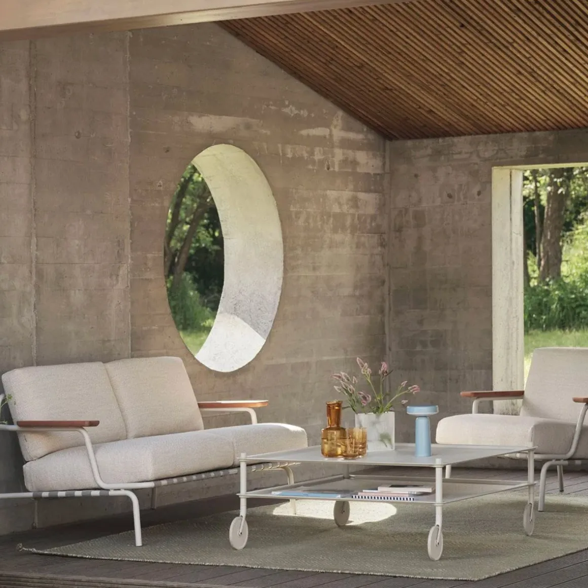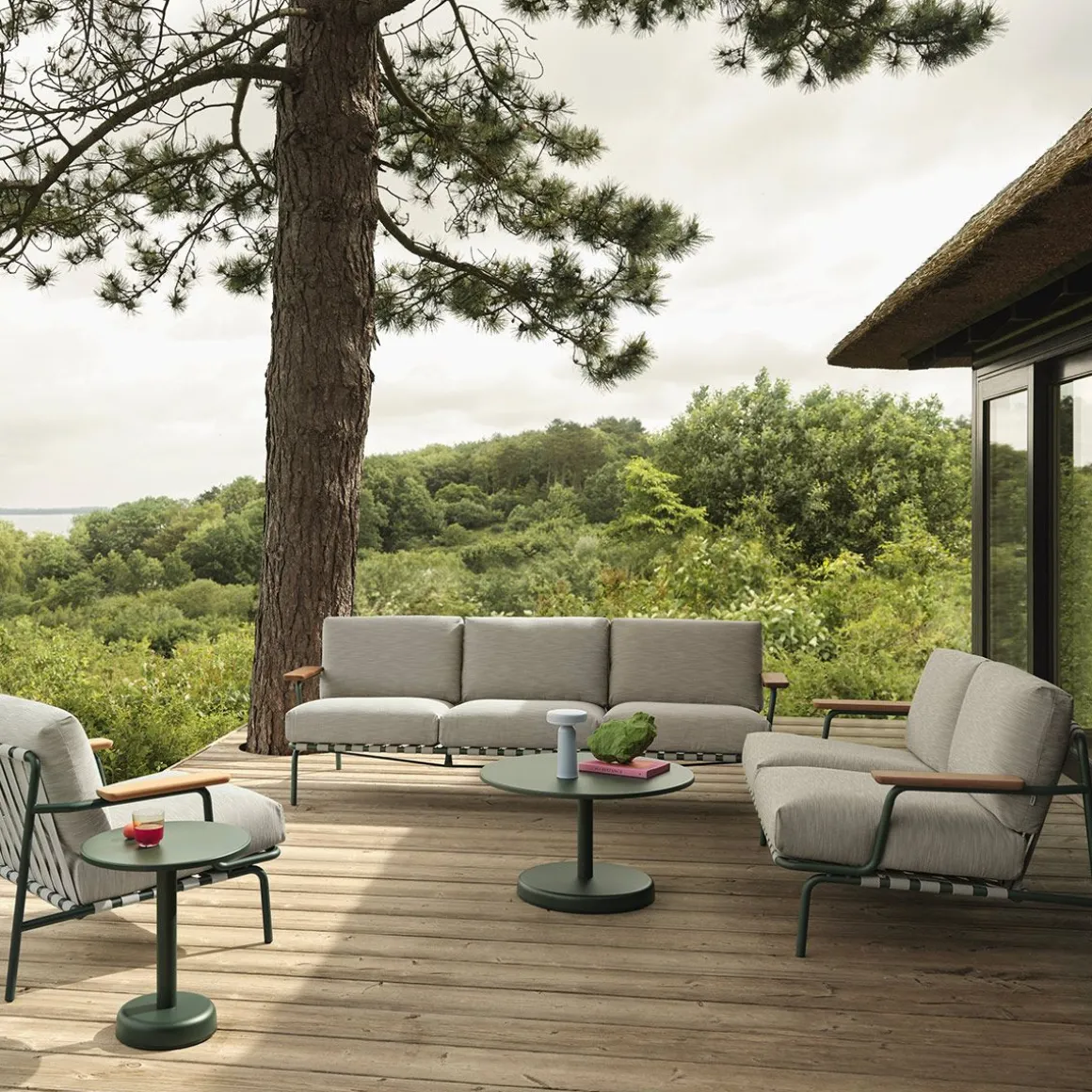 Settle Sofa de Muuto par Anderssen & Voll. Le canapé d’extérieur Settle vous invite à vous installer dans son confort, offrant un cadre idéal pour profiter du plein air toute la journée. Son cadre en acier aéré, doté de ceintures visibles et de détails complexes, rehausse son allure visuelle sous tous les angles, tandis que ses accoudoirs, fabriqués à partir de bois d’acajou sapelli certifié FSC™ (FSC-C028824), ajoutent une sensation chaleureuse et tactile. Le cadre en acier de Settle est galvanisé, apprêté et recouvert de poudre, garantissant une résistance à la corrosion pour une utilisation durable. Les coussins moelleux, fabriqués à partir de mousse à séchage rapide et de textiles d’extérieur durables, offrent une résistance à séchage rapide sous les averses de pluie et une durabilité toute l’année lorsqu’ils sont utilisés avec une housse d’extérieur.