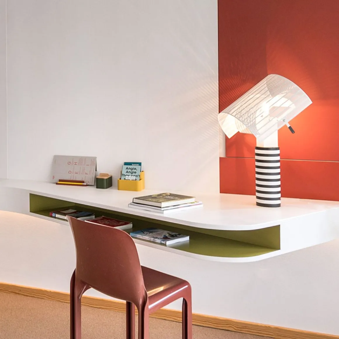 Shogun est une lampe de table créée par Mario Botta pour Artemide. Cette lampe dont la structure est en métal verni noir et blanc apporte une touche ultra contemporaine à votre intérieur. Les diffuseurs sont en tôle d’acier perforé verni. La superposition et l’orientation des diffuseurs permet de créer d’agréables jeux d’ombres et de lumière. L’émission de la lumière est diffuse.