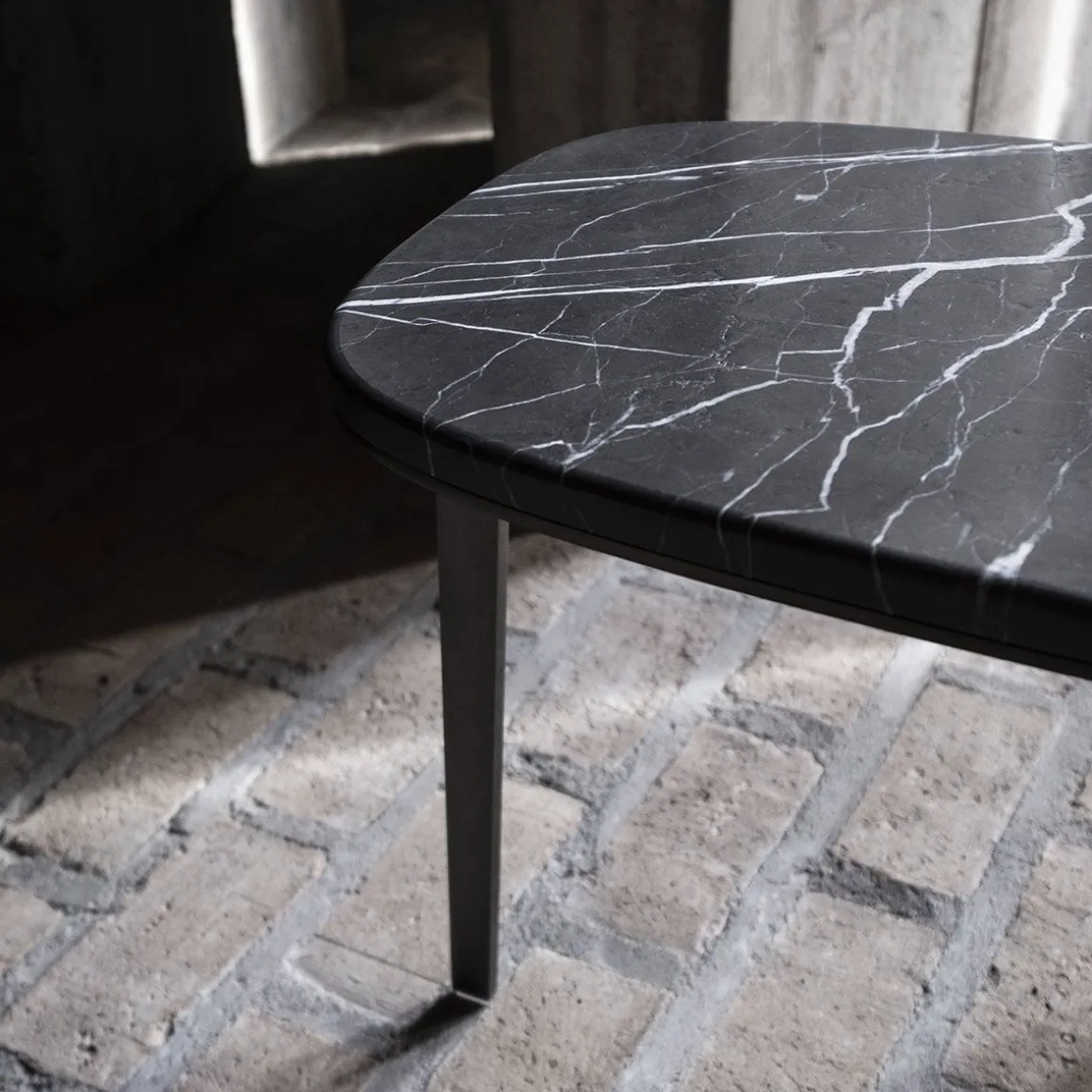 Matériaux : piètement métal soudé découpé au laser, dessus en marbre