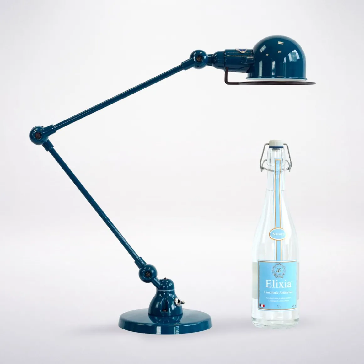 La lampe fait partie de la collection signal de JIELDE (collection loft format 2/3 ). Chaque lampe est faite main en petite série, et est numérotée. On apprécie particulièrement le côté industriel de la lampe qui a été conservé depuis les années cinquante. Fabriqué en France