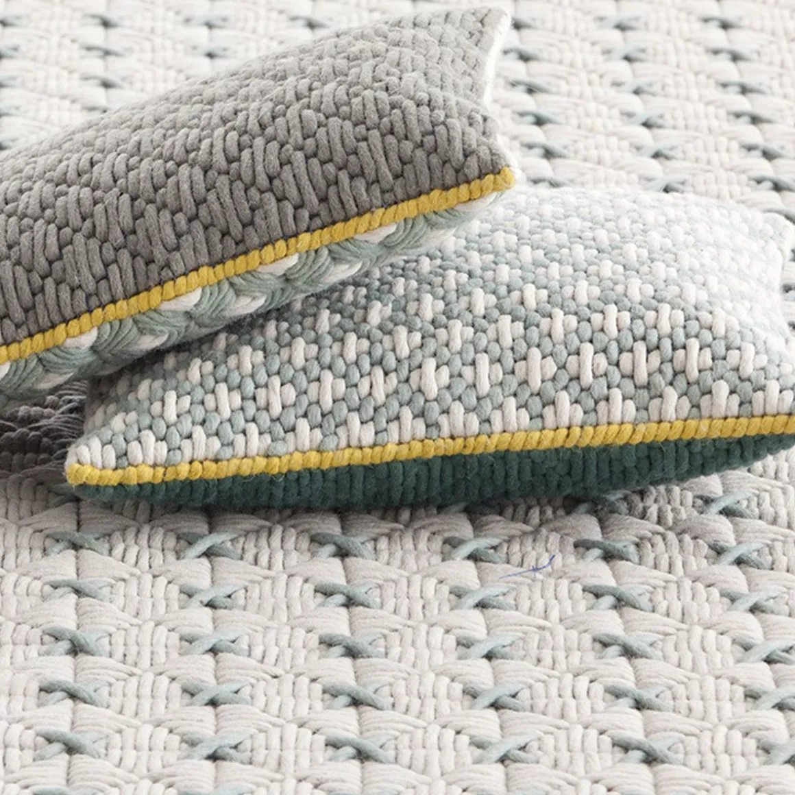 Finitions : gris clair/ bleu, celadon/ vert, jaune