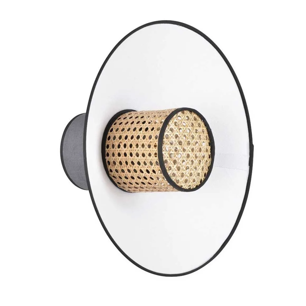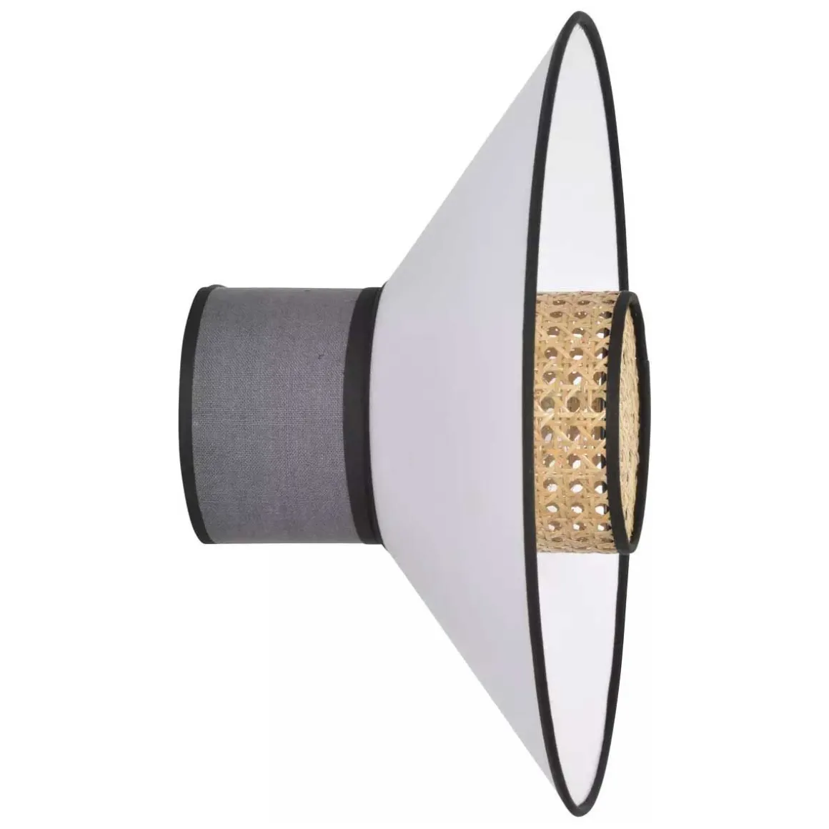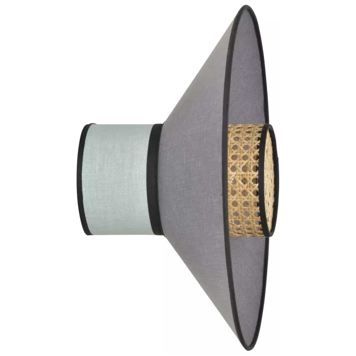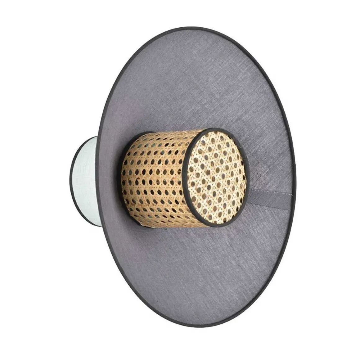 L’applique Singapour de Market Set est un empilement de 3 abat-jours en lin lavé et cannage. Le luminaire est équipé d’un cordon textile et d’un pavillon en métal adaptable DCL.
