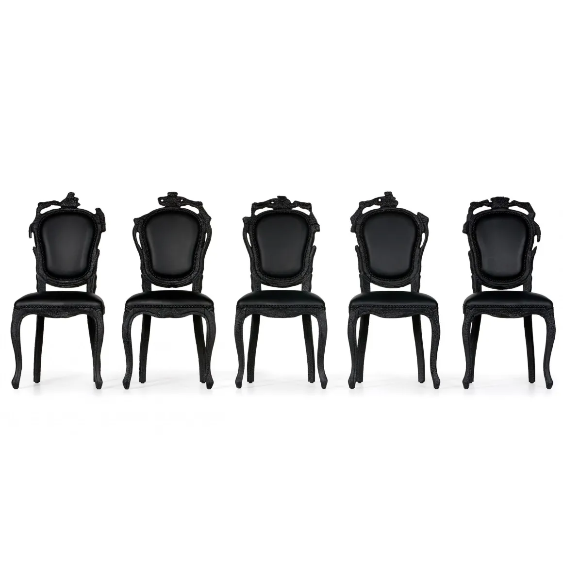 Somptueuse, cette chaise apporte une touche chic à votre intérieur. Chaque chaise est unique grâce à la fabrication où le bois brûlé laisse son empreinte. De style victorien, Smoke dining nous emporte dans une autre époque pour votre plus grand plaisir !