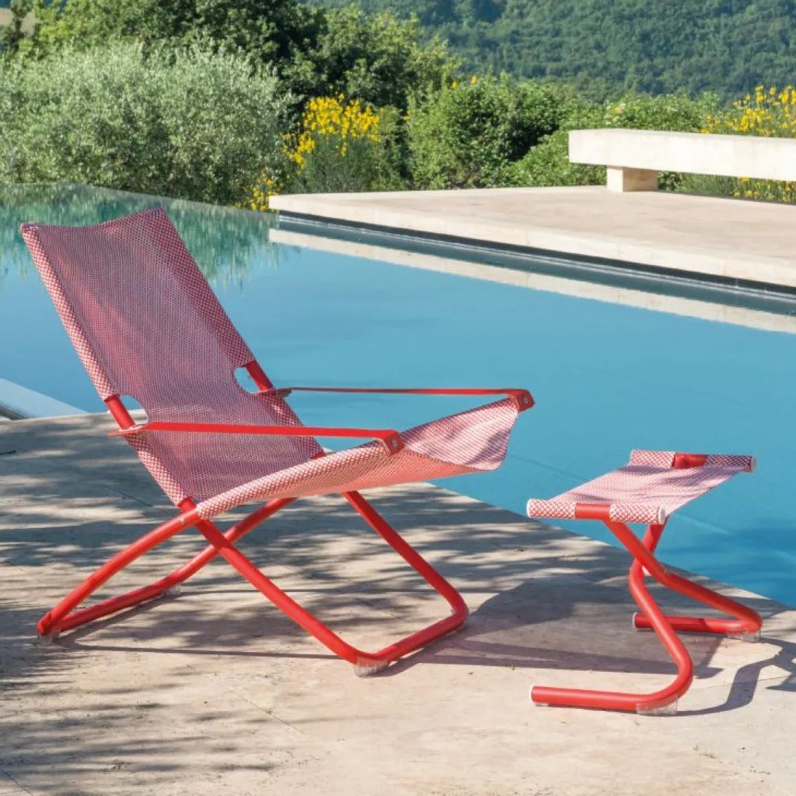 Snooze associe une structure en tube d’aluminium légère et robuste à une assise en tissu Emu-Tex. Très résistante, cette toile technique d’extérieur est à la fois indéchirable et traitée anti-UV. Elle résiste à la chaleur et s’entretient très facilement puisqu’elle peut être retirée puis lavée à l’eau et au savon. La souplesse de la toile ainsi que l’ergonomie du produit vous assurent un confort optimal, même en cas d’assise prolongée. Pliant, léger et coloré, le pouf / repose-pieds Snooze est le compagnon idéal du fauteuil de la même collection.