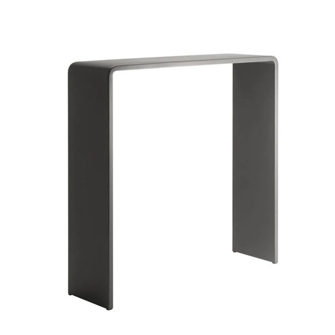 Haute console, structure avec double paroi, épaisseur 23mm, avec angles arrondis en tôle d’acier naturelle découpée et courbée.