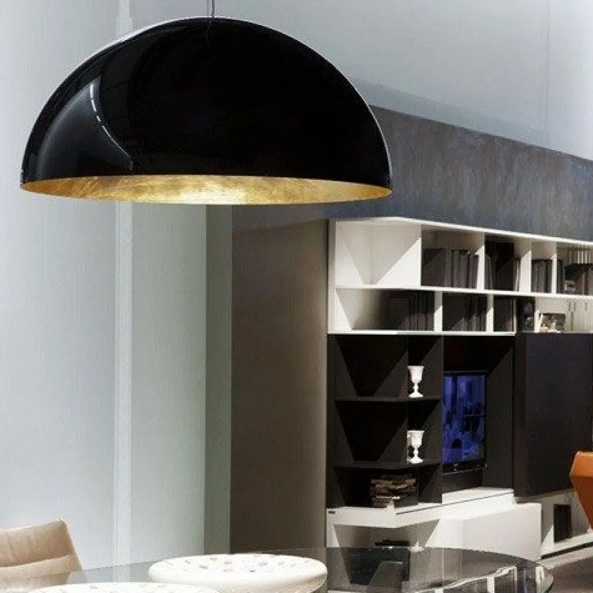 L’histoire de Sonora est l’histoire d’une forme géométriquement pure, l’hémisphère, obessionnellement recherché par Magistretti pendant près de trente ans est disponible dans de nombreux matériaux et tailles. Créée en 1976 grâce à l’aluminium tourné, il mesurait déjà 100 cm. En 1990, il été offert dans un verre soufflé gravé et en 2003 en méthacrylate. Trois ans plus tard, cette dernière variante mesurait 133 cm, agissant comme une démonstration d’une technologie exceptionnelle. Sonora, maladroitement imité dans le monde entier, est certainement l’une des lampes les plus populaires conçues par Magistretti, qui a reconnu en elle la capacité à éclairer, et à caractériser, tout un environnement particulier : une sorte de volume qui est contenu dans un autre volume qui est votre pièce à vivre.