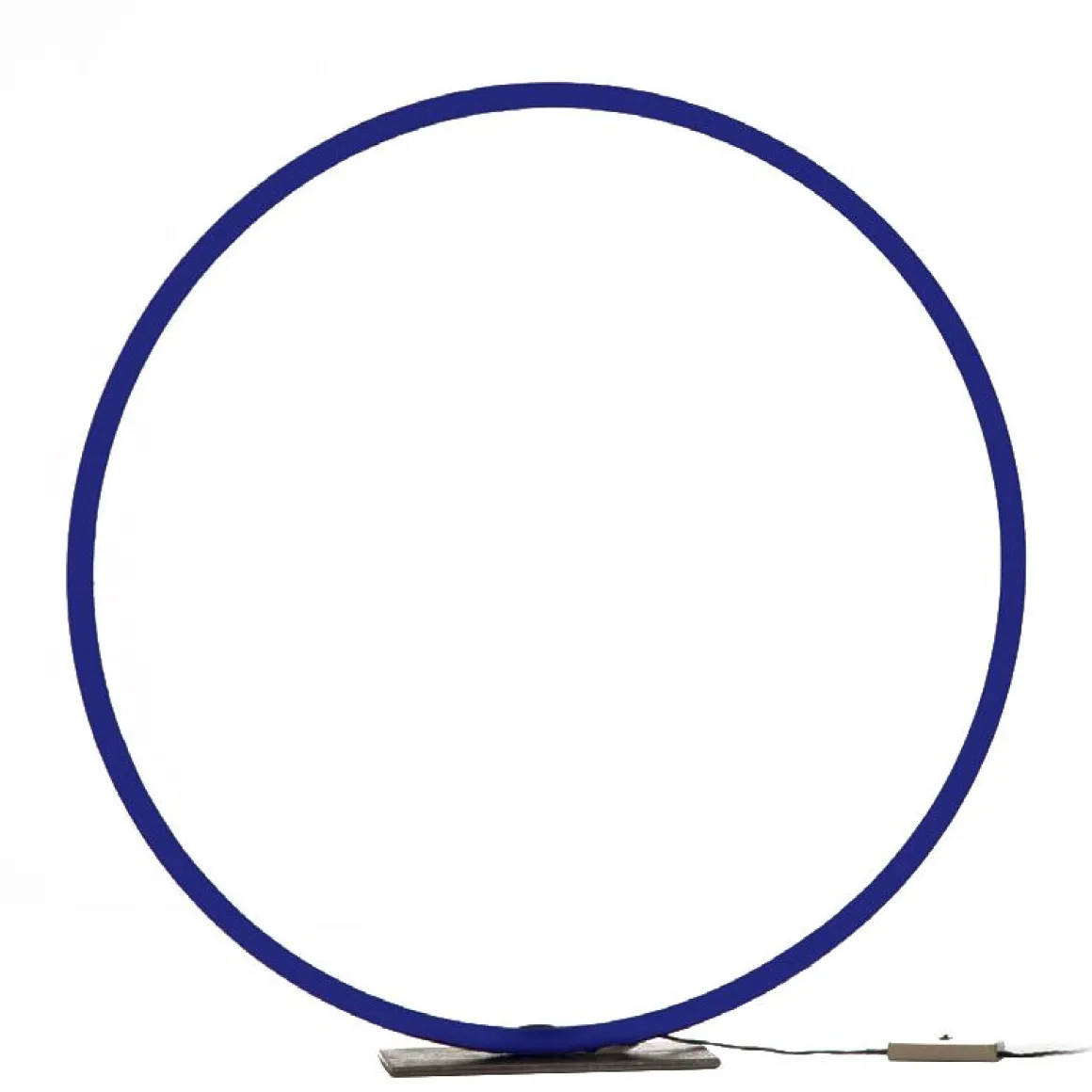 Matériaux : base de fer ciré, anneau de cuivre bleu peint à la main, fil bleu
