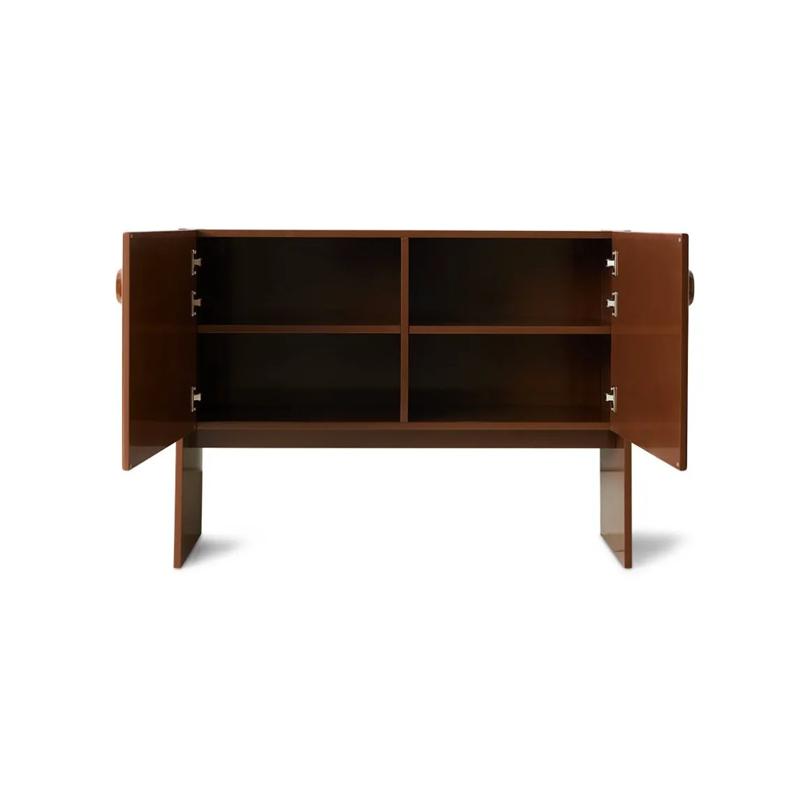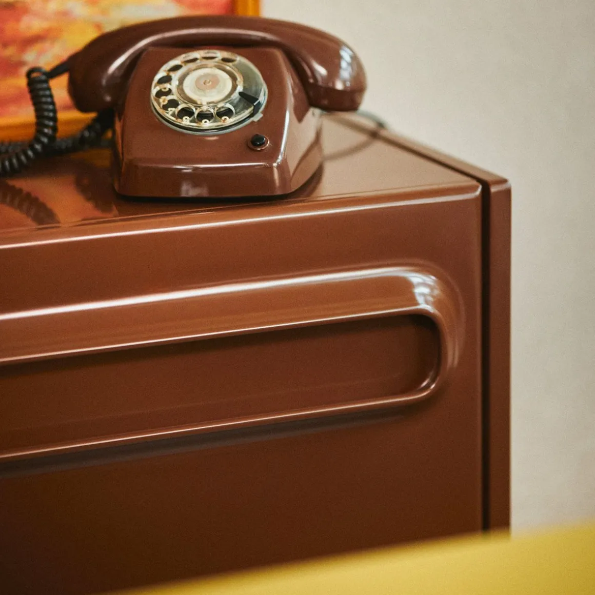 Space petite commode de HK Living. Présentation de la commode pour petits espaces, la dernière innovation de notre collection d’armoires Space, conçue pour apporter l’audace de l’esthétique de l’ère spatiale dans la maison moderne. Fabriquée avec des lignes épurées et une riche finition brun chocolat, cette commode dégage une chaleur et une sophistication intemporelles. L’inspiration du design de l’ère spatiale est évidente dans la silhouette épurée et l’utilisation de surfaces lisses et réfléchissantes qui suggèrent un clin d’œil aux formes surnaturelles d’exploration spatiale des années 1960 et 1970. Cette commode compacte est parfaite pour ceux qui apprécient le design minimaliste mais qui ont besoin de solutions de rangement pratiques.