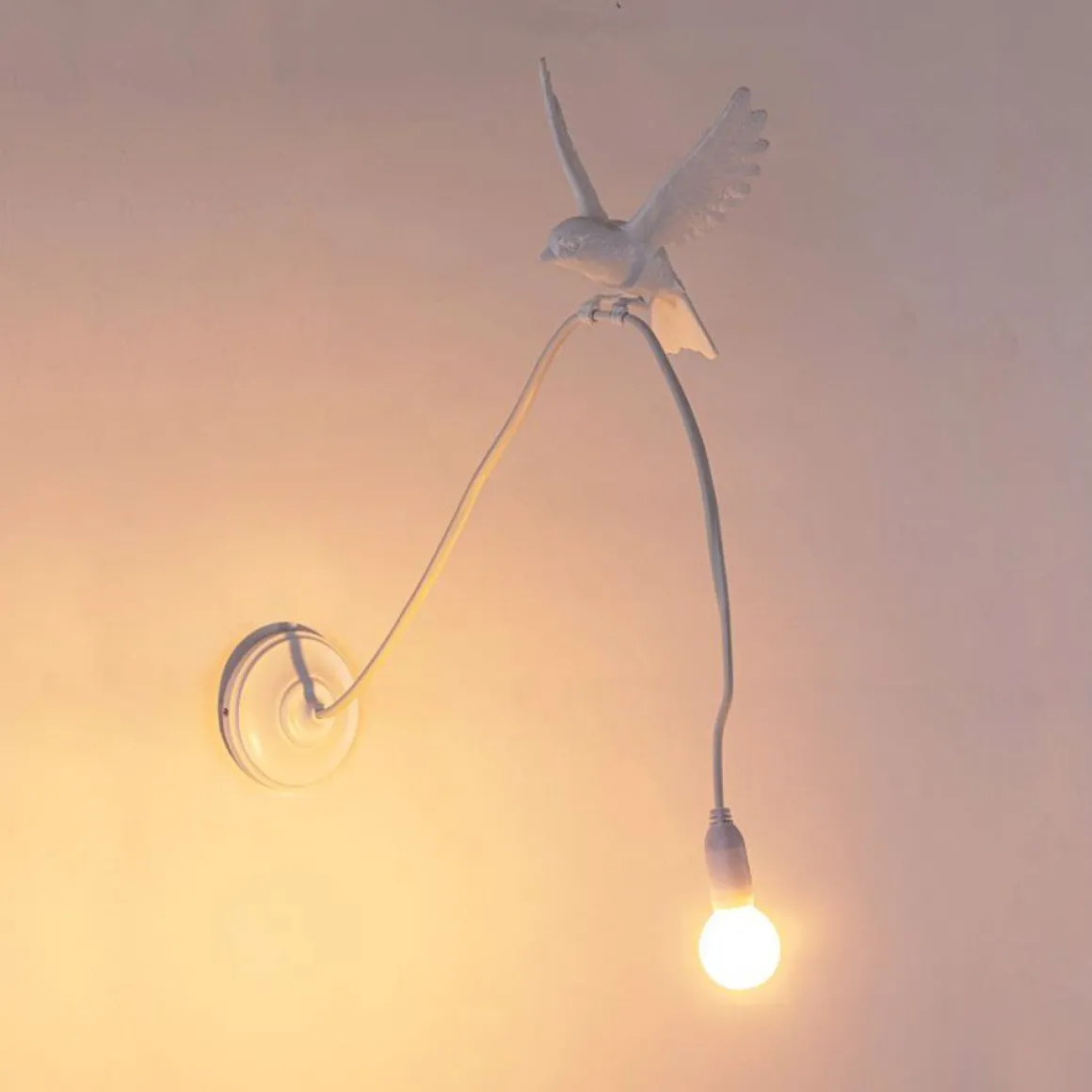On voir la vitalité de ces oiseaux qui apportent avec animation la lumière. Le designer a voulu recréer ce moment où l’on observe un petit oiseau secrètement occupé et le cordon spécial de ses lampes recrée la magie typique de ces petits oiseaux.