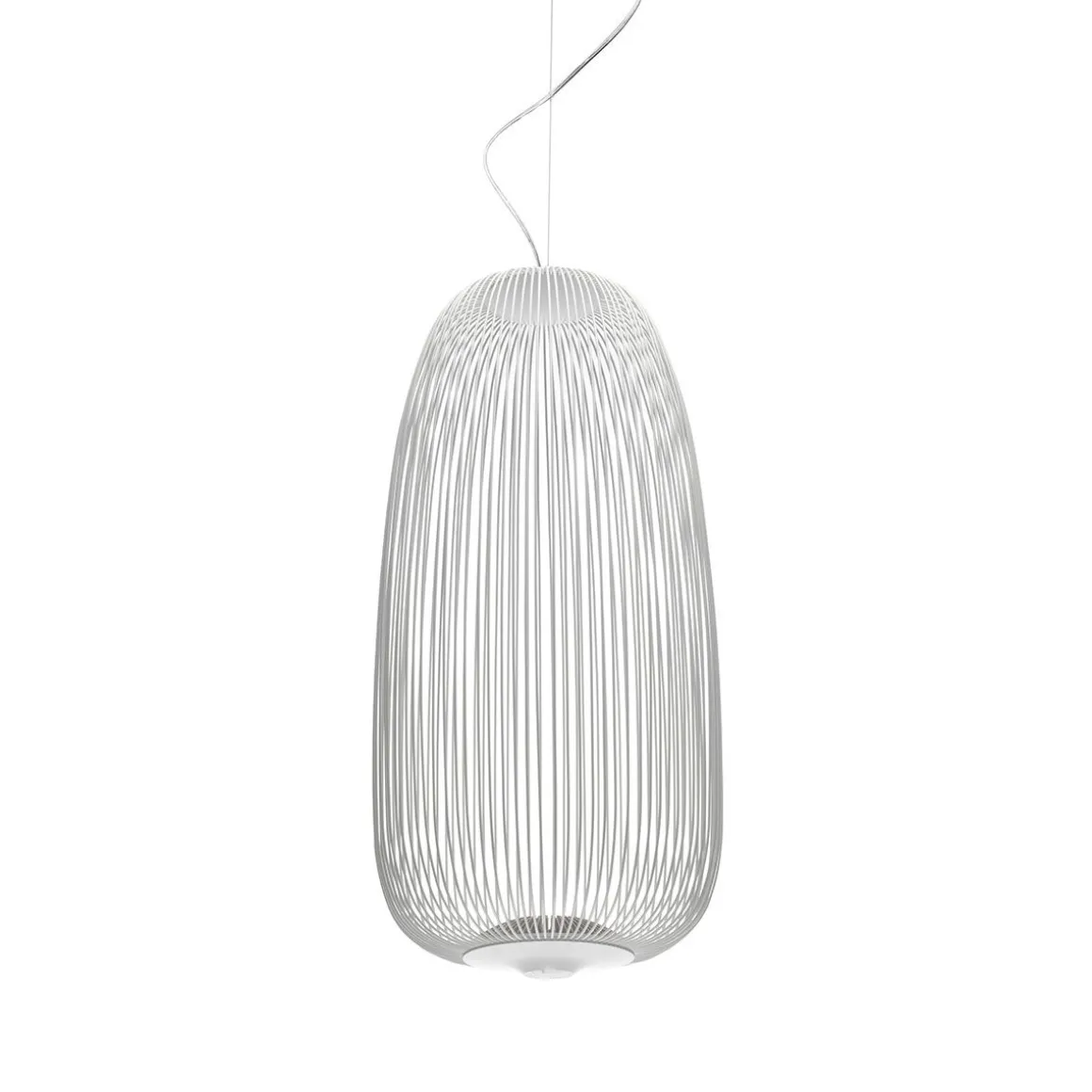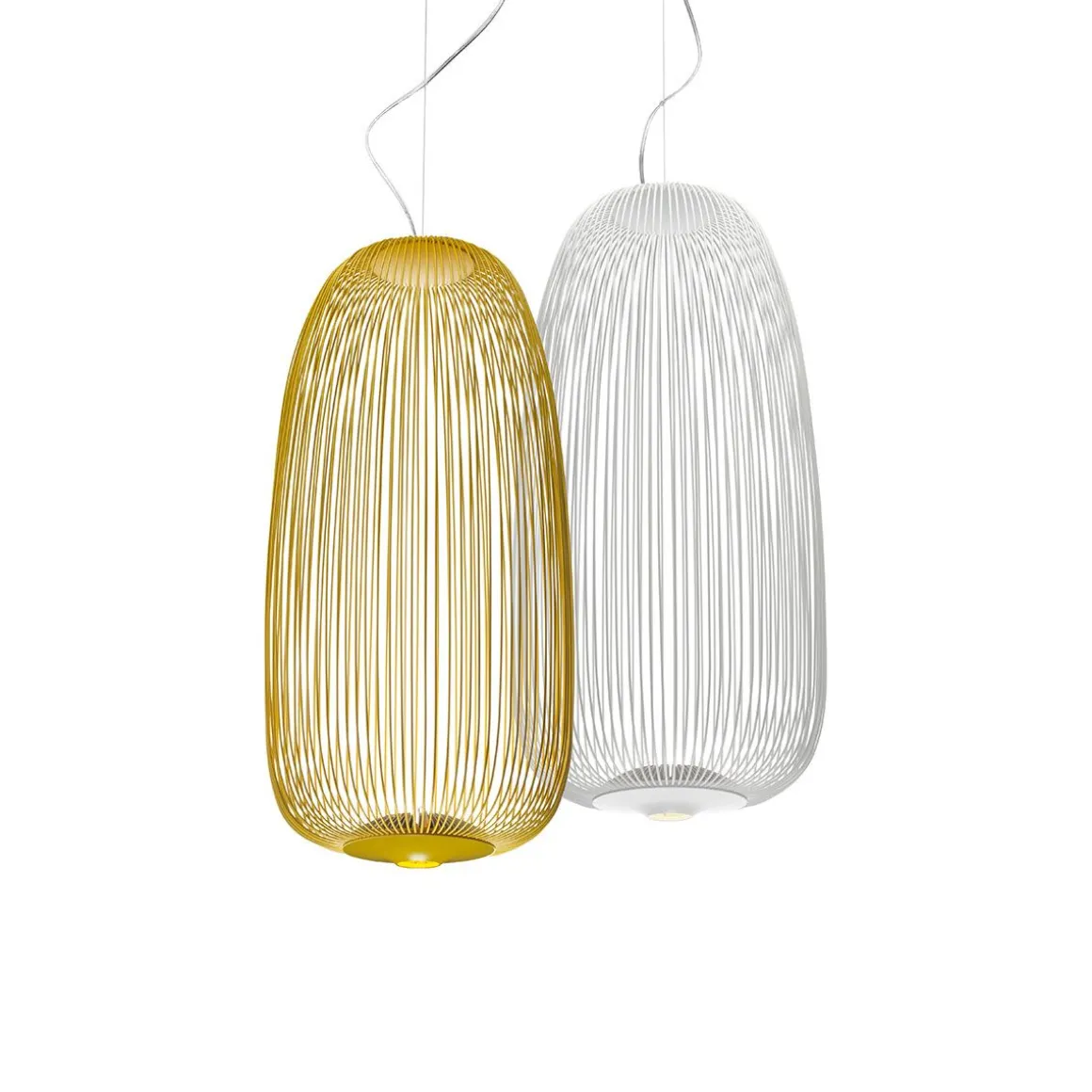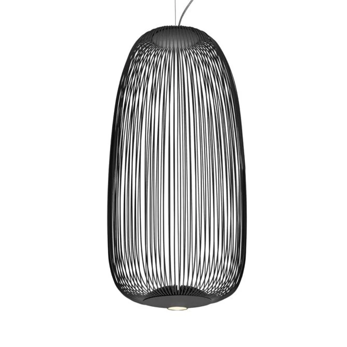 La lampe a suspension Spokes puise son inspiration des anciennes lampes orientales à volières domestiques. La réalisation naît de l’observation des rayons d’une roue de vélo, d’où le nom du projet, Spokes, qui signifie « rayons » en anglais. Résultat : une lampe aux formes rondes et au volume léger qui contient la lumière, tout en la laissant filtrer dans l’espace. La légèreté qui caractérise le projet s’associe à la solidité de la forme, réalisée en fil de métal, et à la fonctionnalité de la source lumineuse à LED, qui permet à la fois d’éclairer par le dessous à la perfection, et d’obtenir des jeux d’ombres et lumières qui se projettent sur les parois avec un effet magique de démultiplication. La suspension Spokes est adaptée aussi bien aux espaces domestiques que publics, et notamment pour personnaliser les grands volumes, grâce à la possibilité de réaliser des compositions multiples.