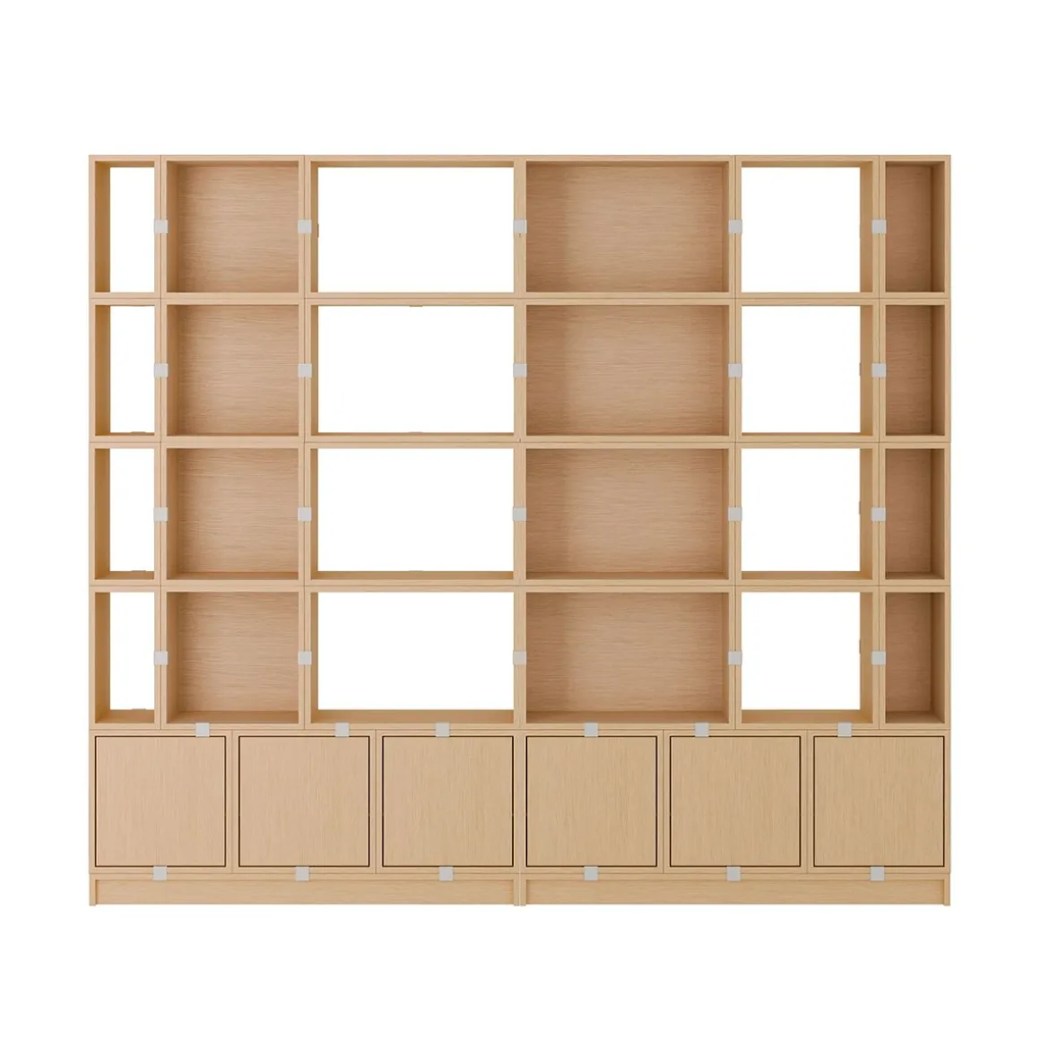 À la fois polyvalent et fonctionnel, le système de rangement empilé peut être agencé et réorganisé pour répondre aux besoins esthétiques et fonctionnels exacts de n’importe quel espace. Vous trouverez ici une sélection de configurations de bibliothèques prédéfinies qui apportent un rangement moderne à n’importe quelle maison, lieu de travail ou établissement d’accueil. Tous les modules avec panneau arrière peuvent être montés directement sur le mur.