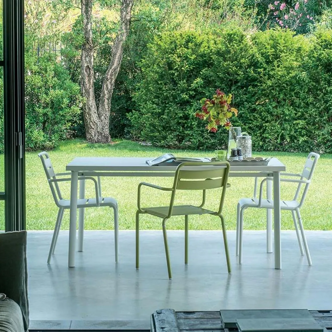 Star est une table dessinée par Emu. Rectangulaire, elle est simple et discrète. Comme un bureau, elle apportera une touche design avec sa tôle. Comme salle à manger, elle offre un espace convivial où on aime se retrouver. Combinée avec les chaises, Star est une salle à manger parfaite. On adore ce côté « bistrotparisien ». Mais elle peut aussi bien prendre place à l’extérieur.